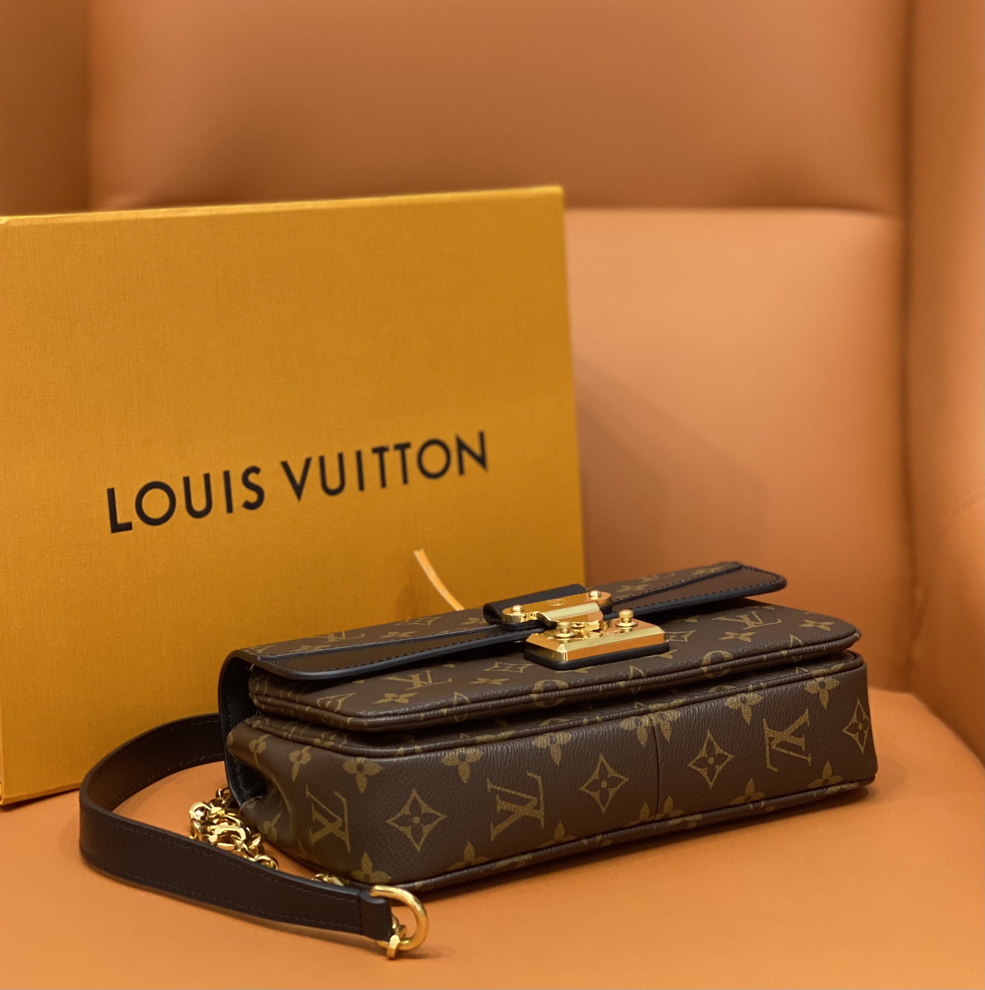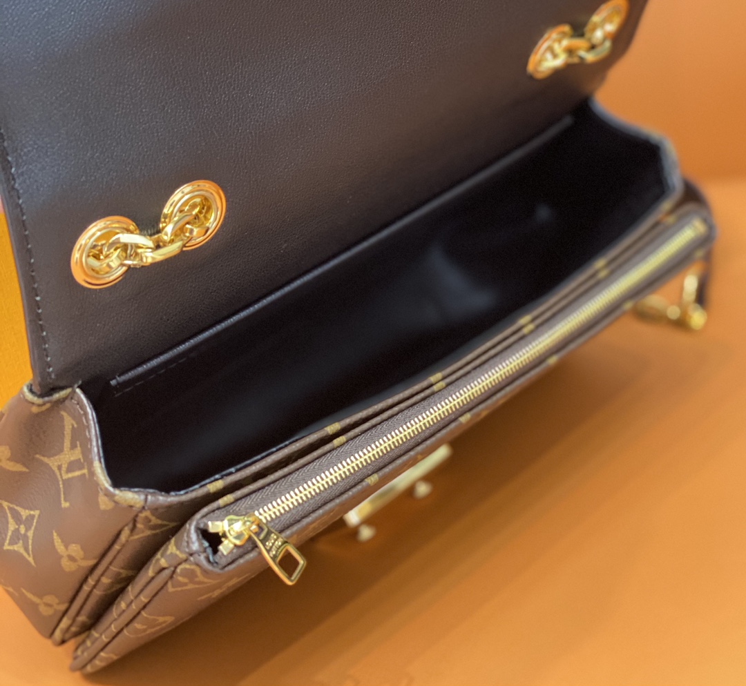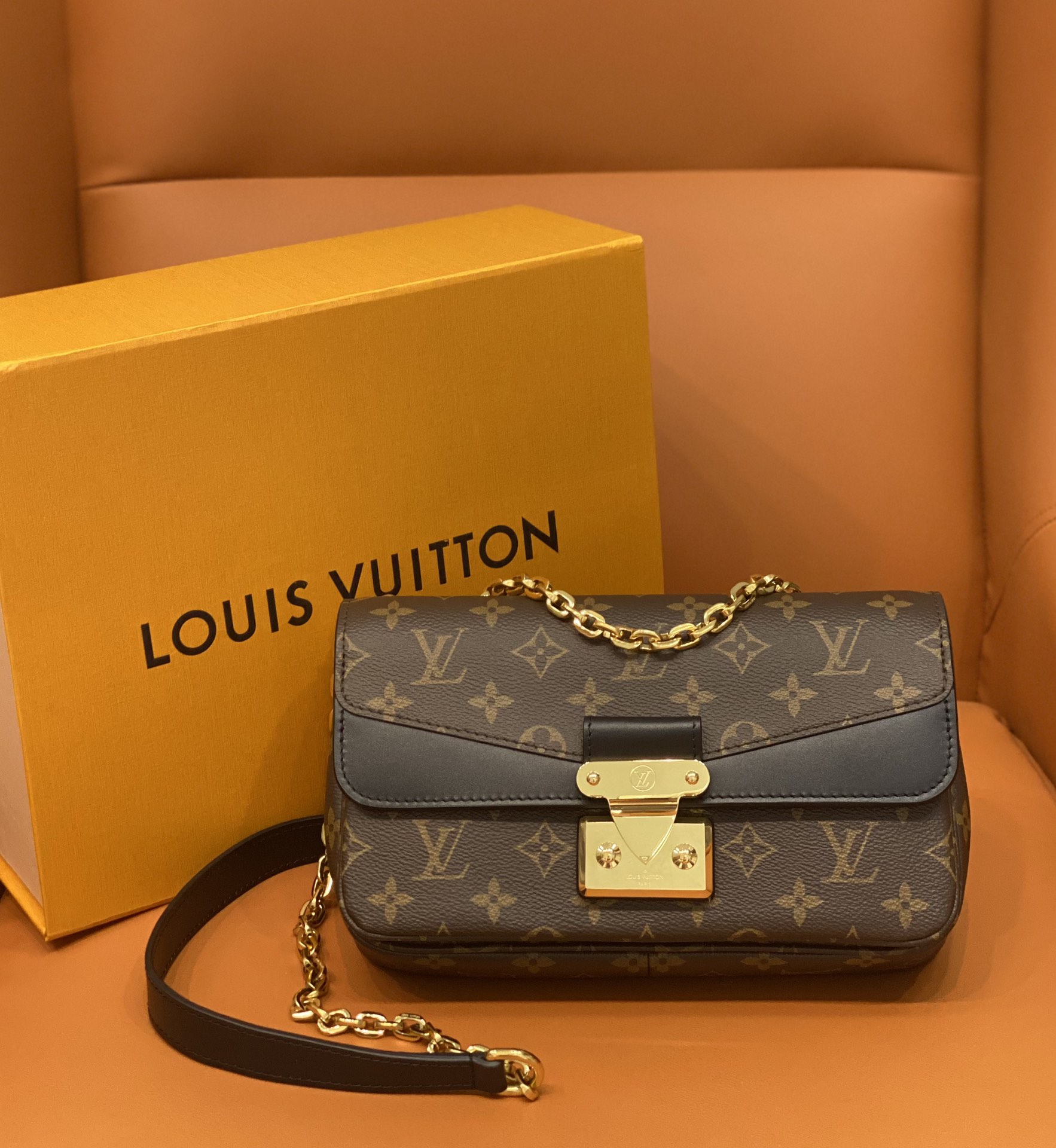 For Spring 2022, Louis Vuitton launches the feminine Marceau chain handbag. Inspired by the design of the Pochette Metis, it’s a compact bag with plenty of storage, that closes with a S-lock, reminiscent of those on the House’s heritage trunks. The gold-color sliding chain has a leather shoulder pad for more comfort.