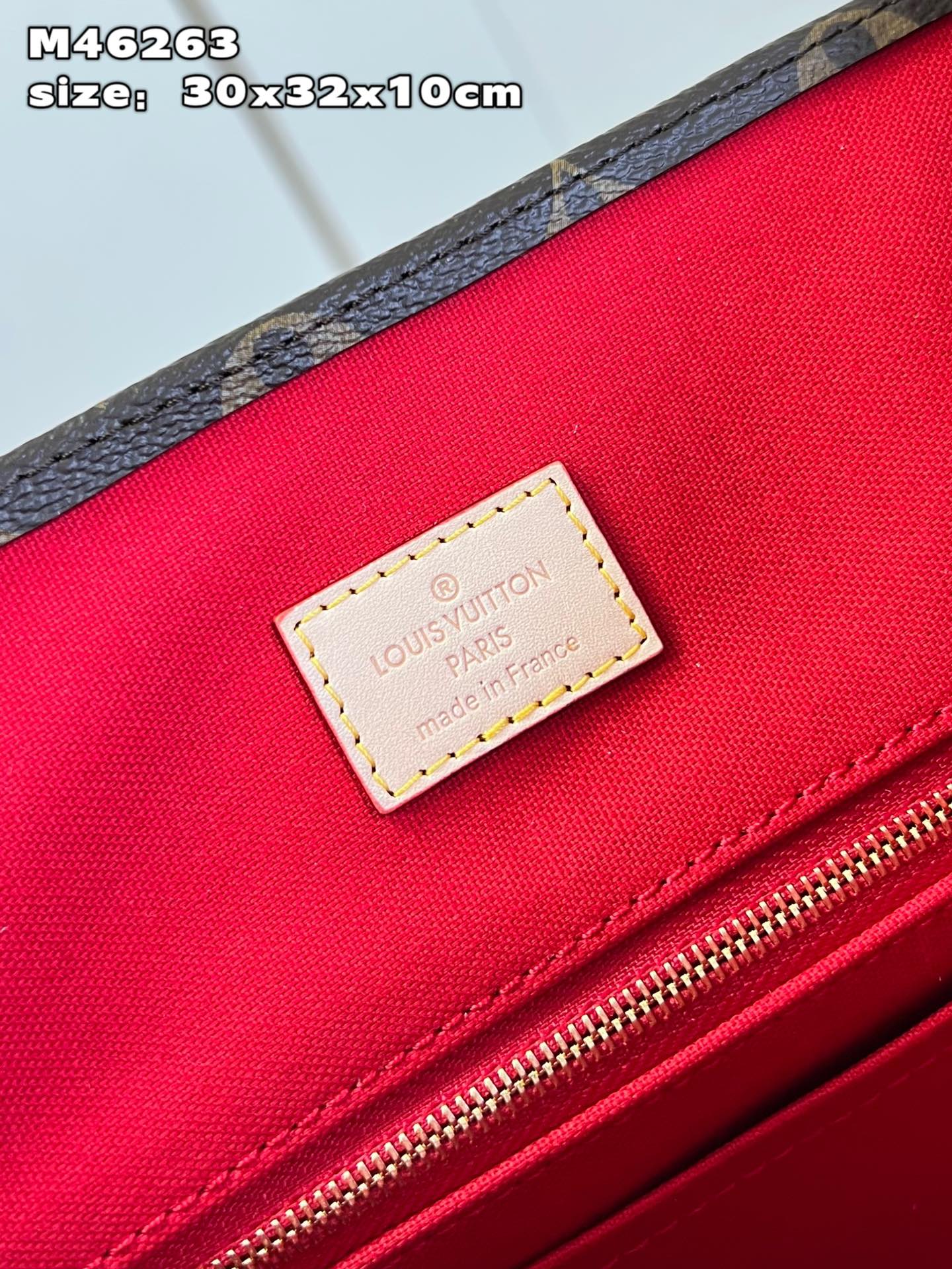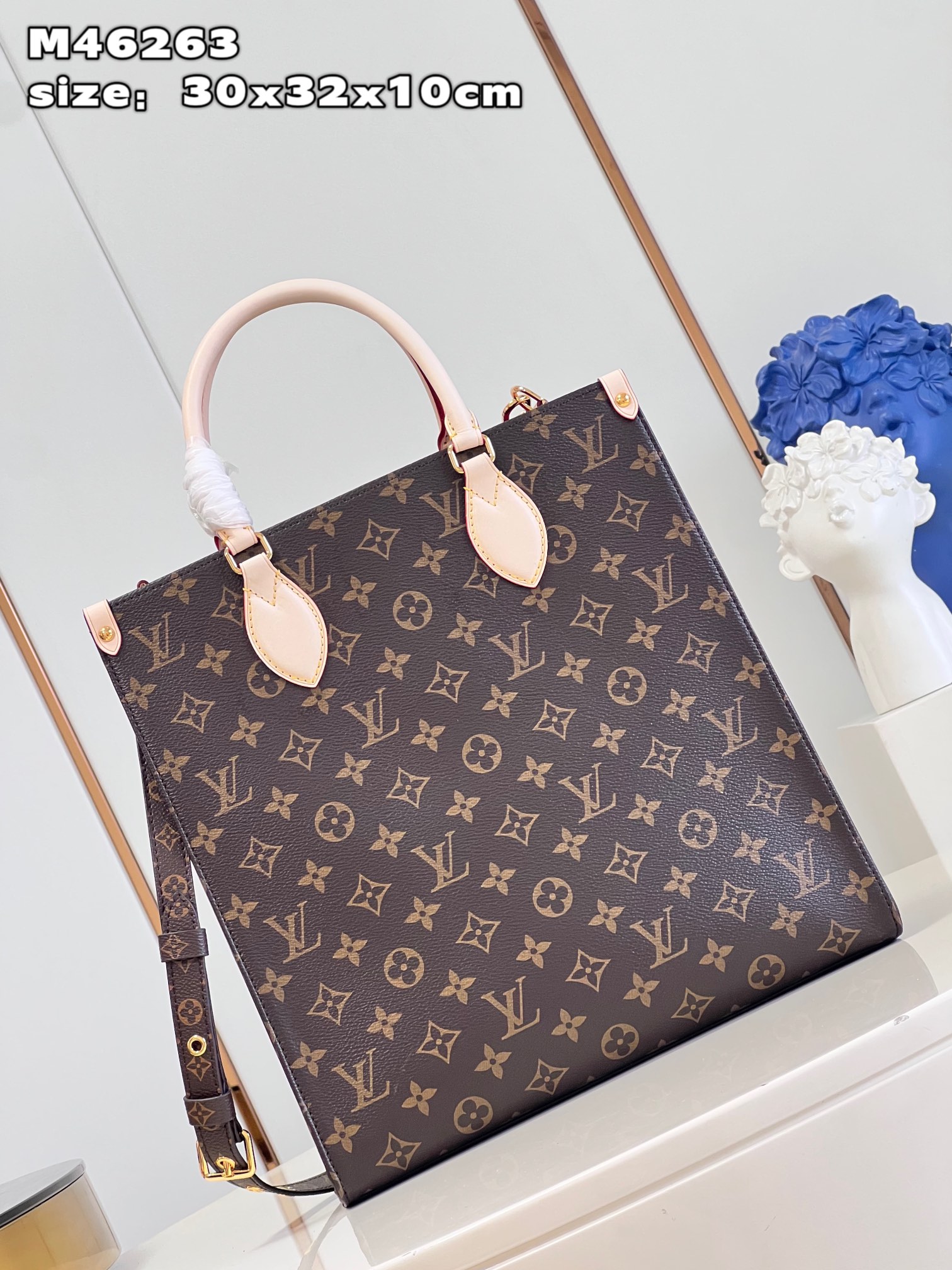 Louis Vuitton reinterprets its iconic Sac Plat for today’s lifestyles. The Sac Plat PM handbag is made from Monogram canvas with natural leather trim. Its red interior includes a zipped and 2 flat pockets. The top handles and detachable shoulder strap mean it can be carried by hand, worn on the shoulder or cross-body.