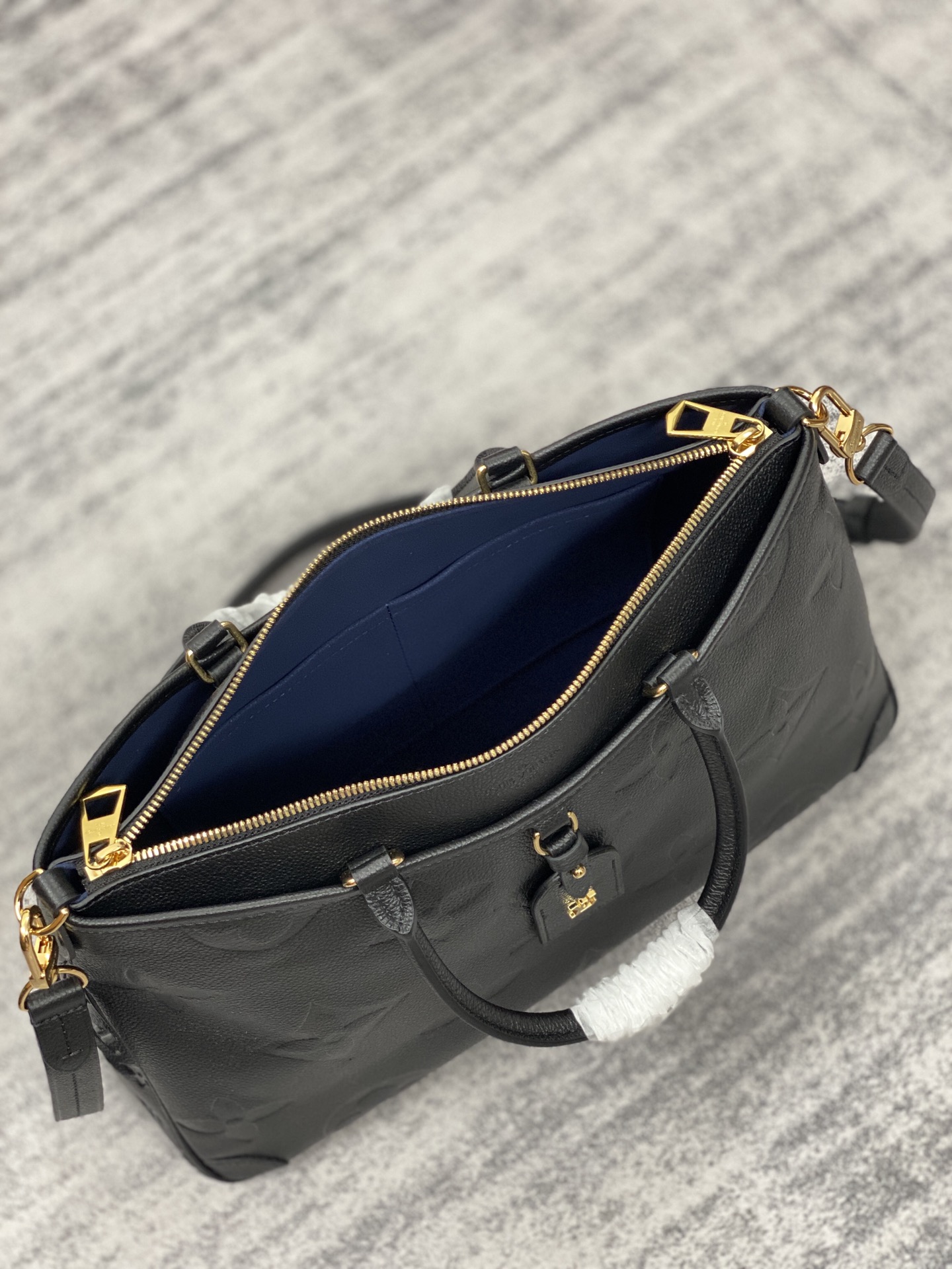 Made from Monogram Empreinte leather, with its embossed Giant Monogram pattern, the Trianon MM tote is an elegant and functional bag. Two rolled-leather top handles ensure comfortable hand carry while a detachable and adjustable leather strap enable shoulder and cross-body wear. The MM size is roomy enough for daily essentials.