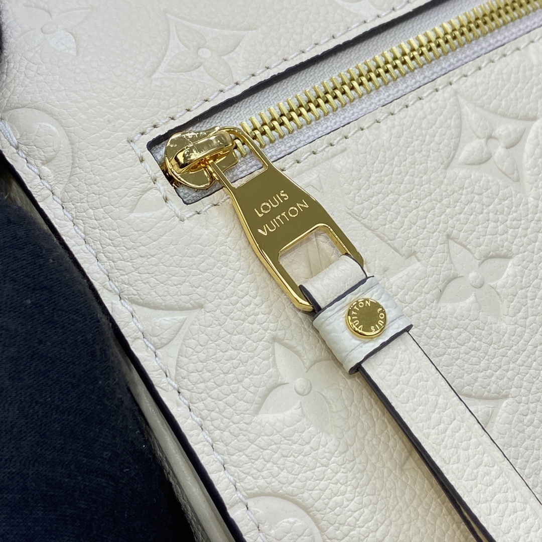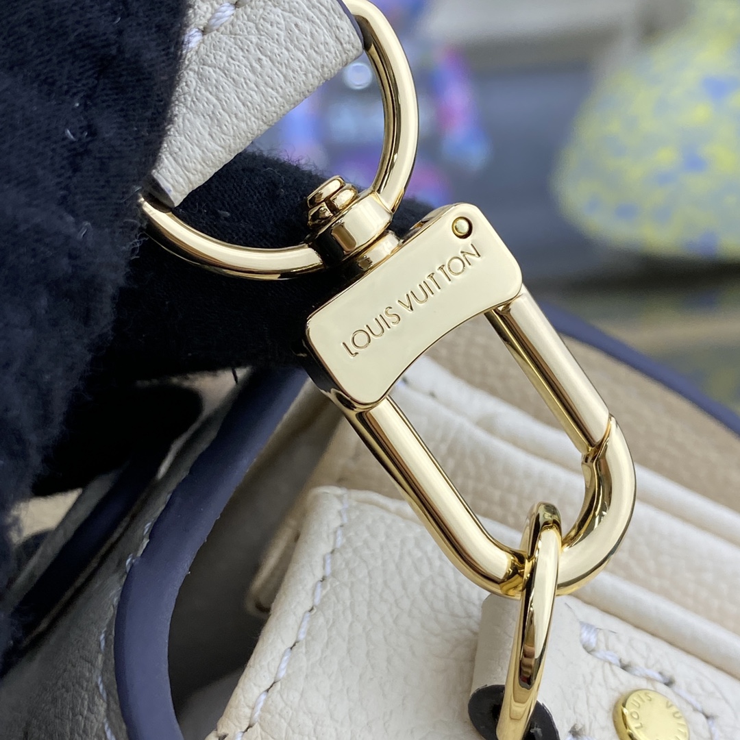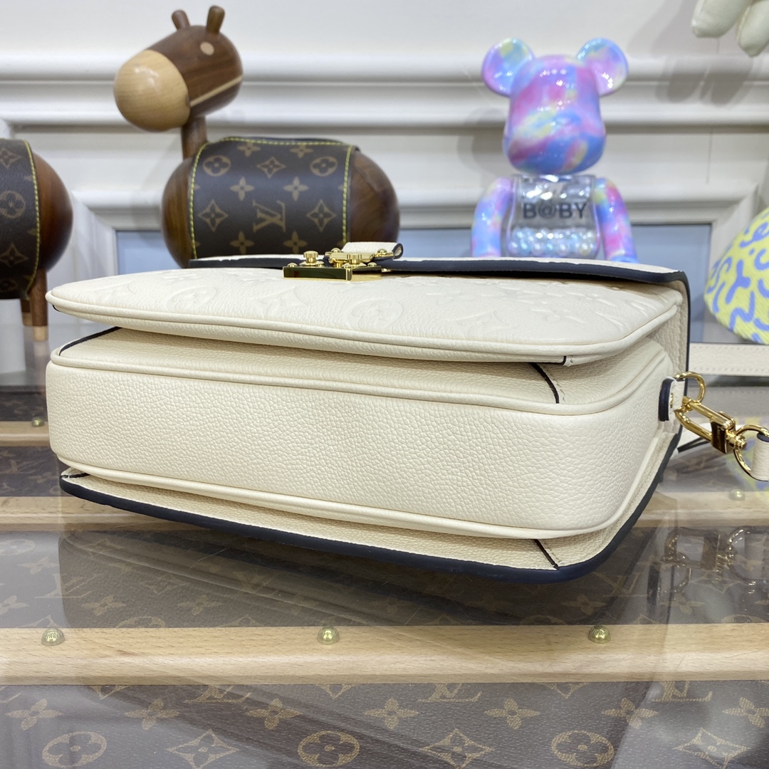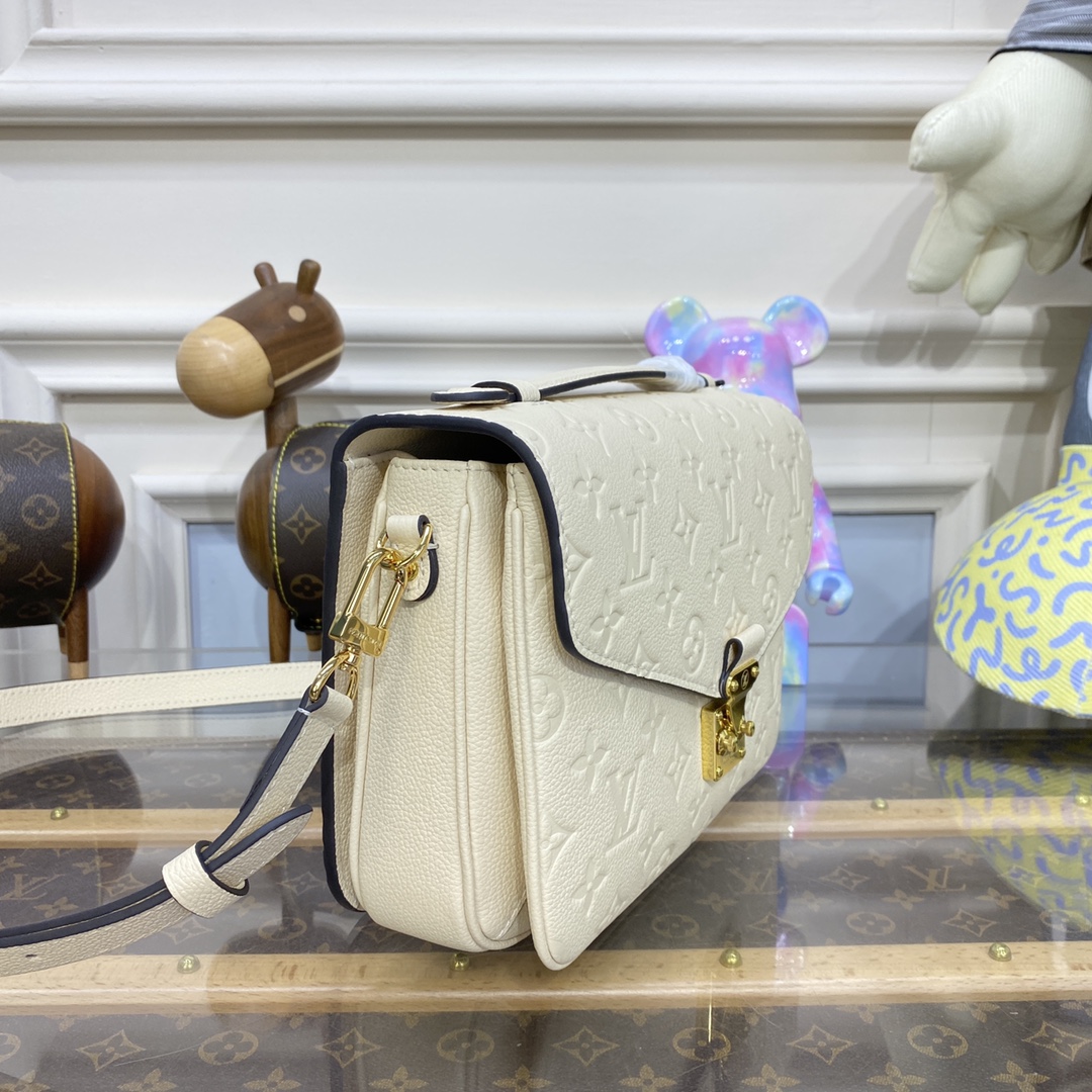 The Pochette Métis handbag, with its classic satchel silhouette, looks luminous in cream-color Monogram Empreinte leather with a matching microfiber lining. The discreet Monogram pattern embossed into the leather and the gold-color hardware, including the S-lock closure, give a modern elegance to this distinctive bag