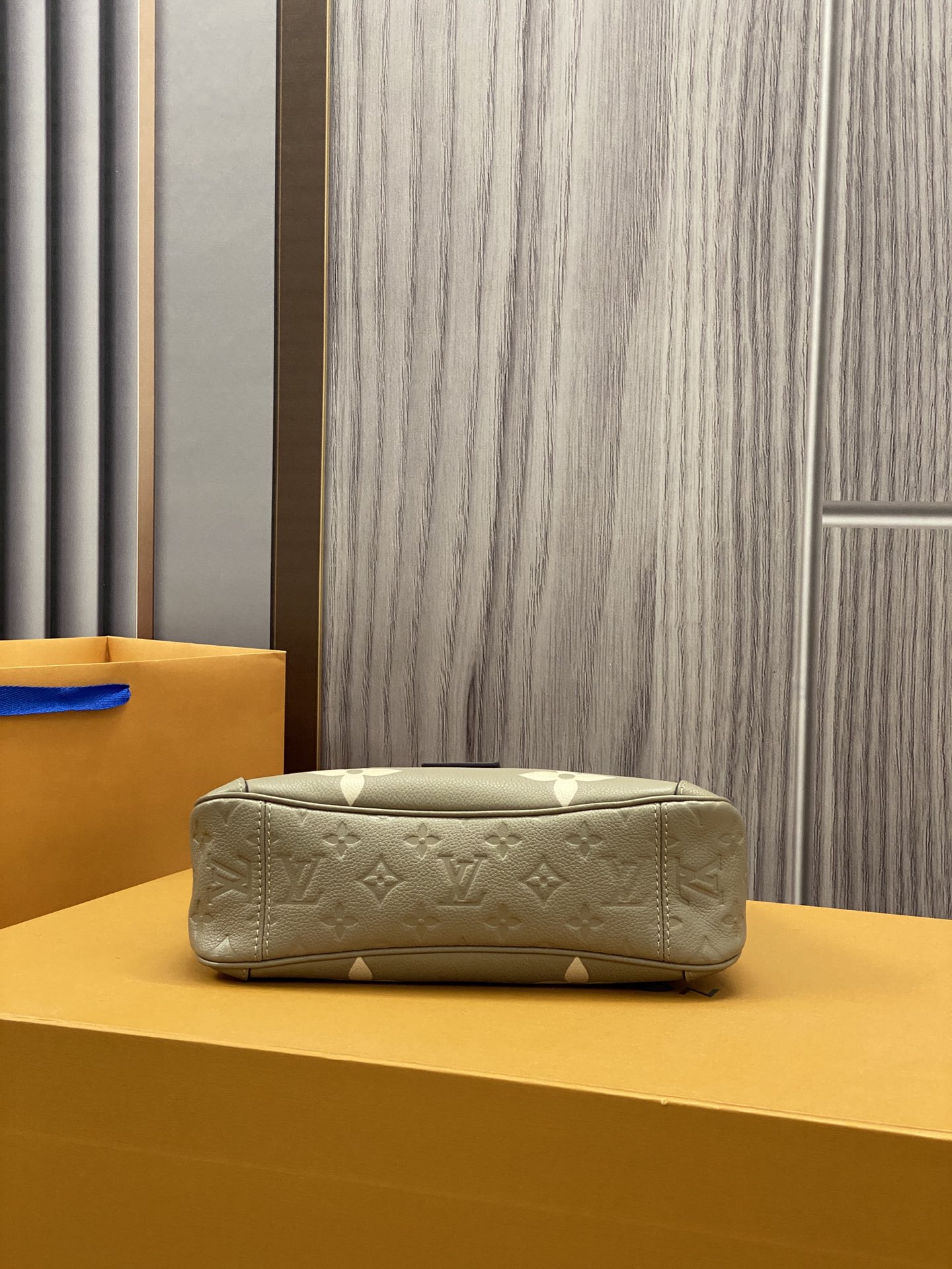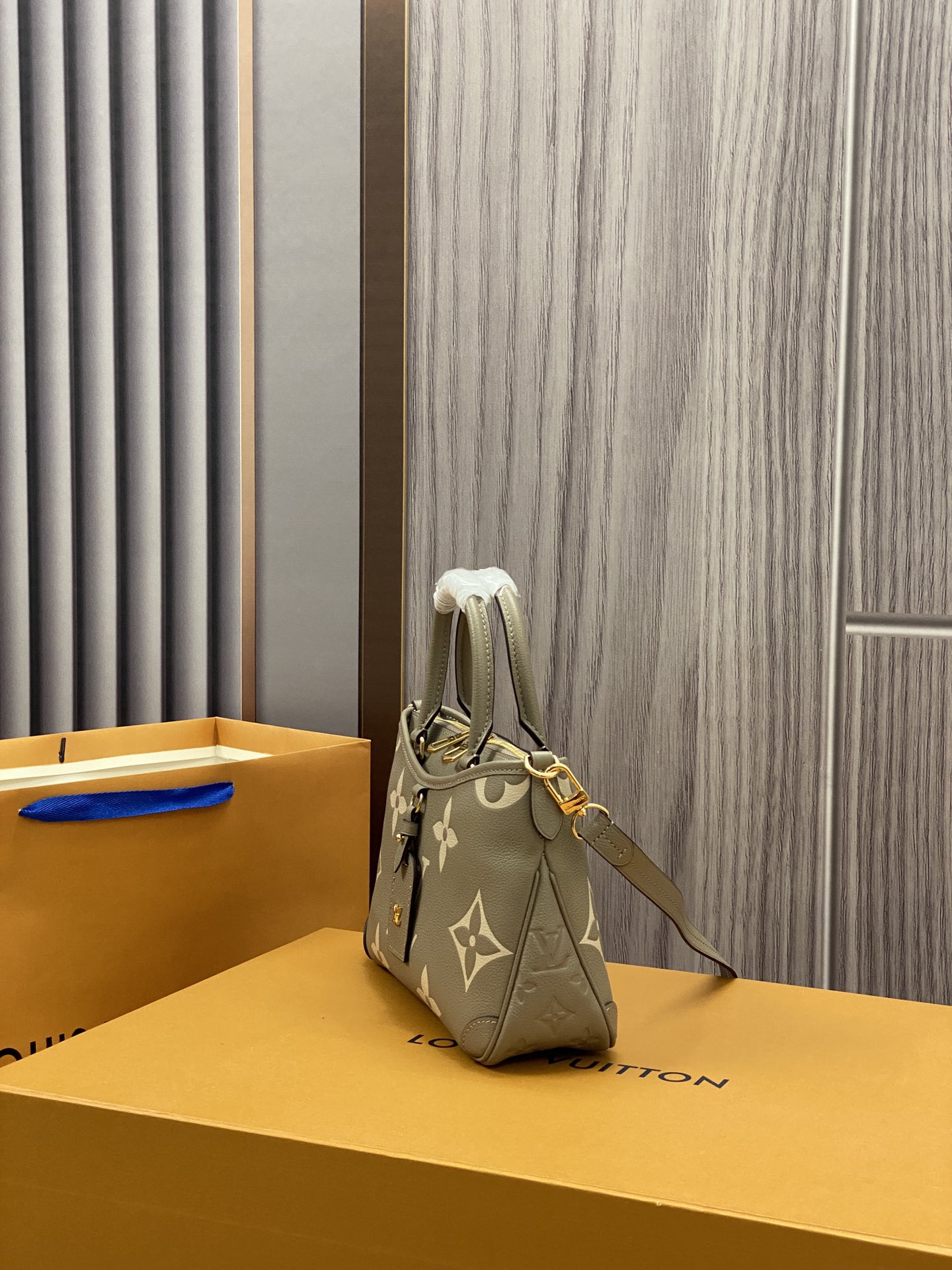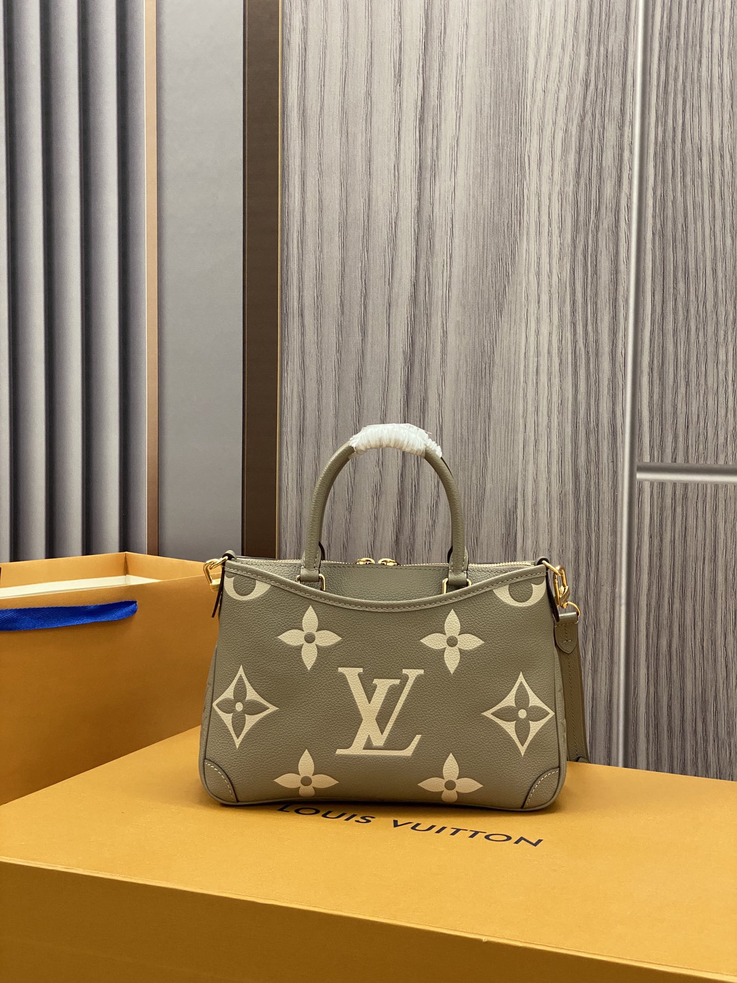 The Trianon PM tote, with its distinctive V-cut silhouette, is made from grained Monogram Empreinte leather with the Monogram Flowers and LVs embossed then printed on the leather in a soft cream tone. A long adjustable and removable strap, in addition to the two top handles, give carry options.