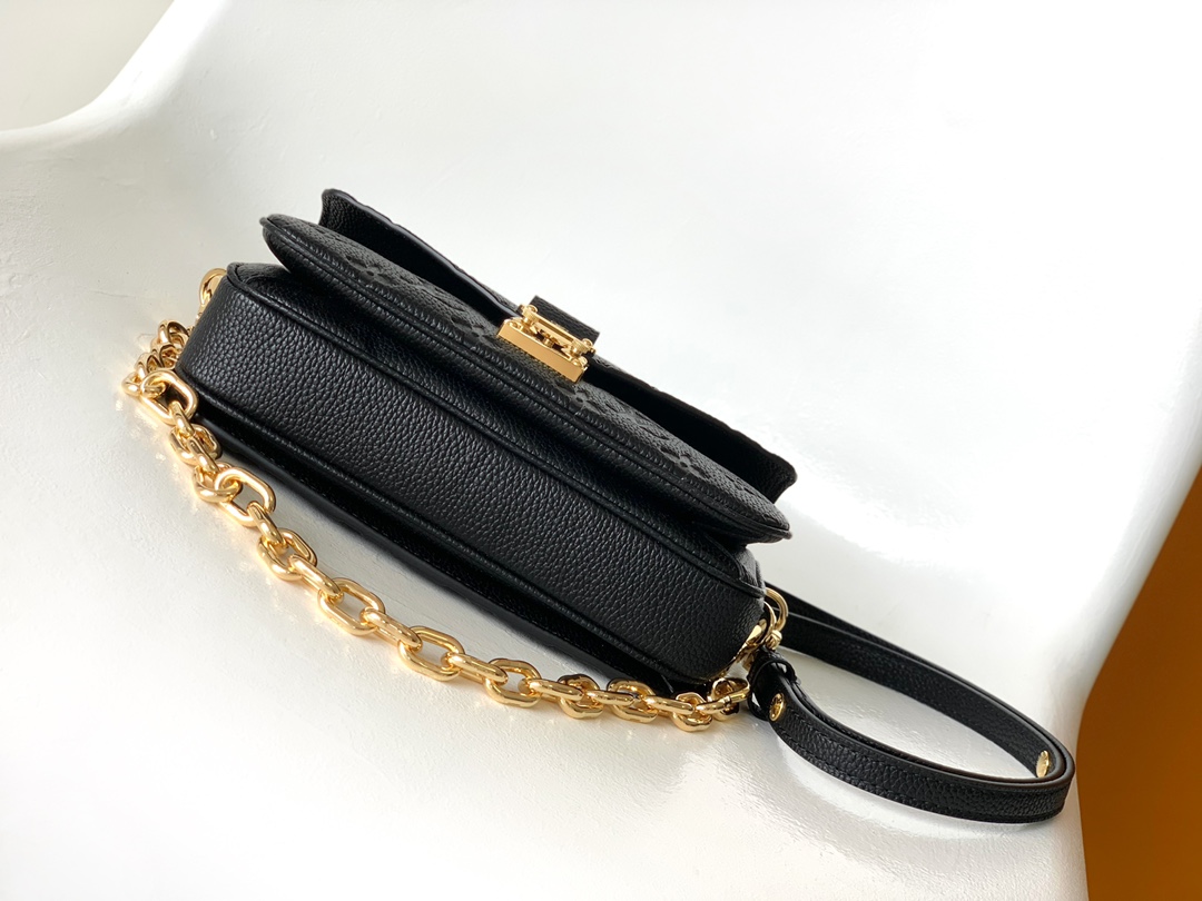 Made from embossed Monogram Empreinte leather, the Pochette Métis handbag blends signature House style and contemporary detailing. The on-trend East-West silhouette is highlighted by a heritage S-lock and removable short chain, both cast from gold-finish metal. With its well-organized interior and adjustable smart strap, this compact bag adapts perfectly to active lifestyles.