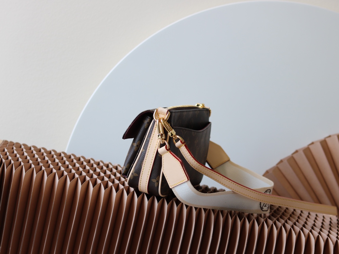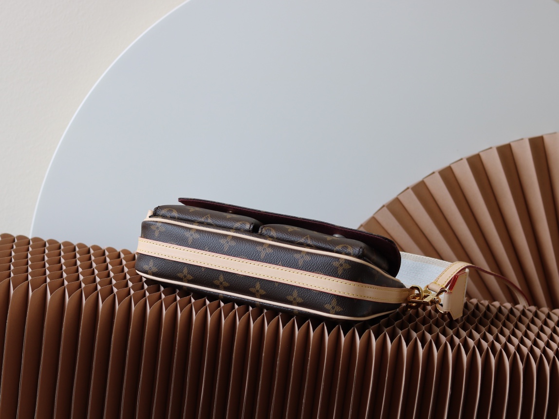 The Vibe handbag in Monogram canvas is inspired by the House’s Viva-cité bag from 2003. Compact and practical, the Vibe features multiple pockets – inside and outside – making it a perfect everyday companion. It comes with a leather cross-body strap and a trendy short shoulder strap in textile with the LV circle signature, enabling different carry styles.