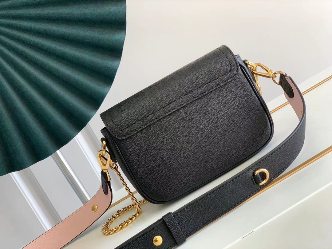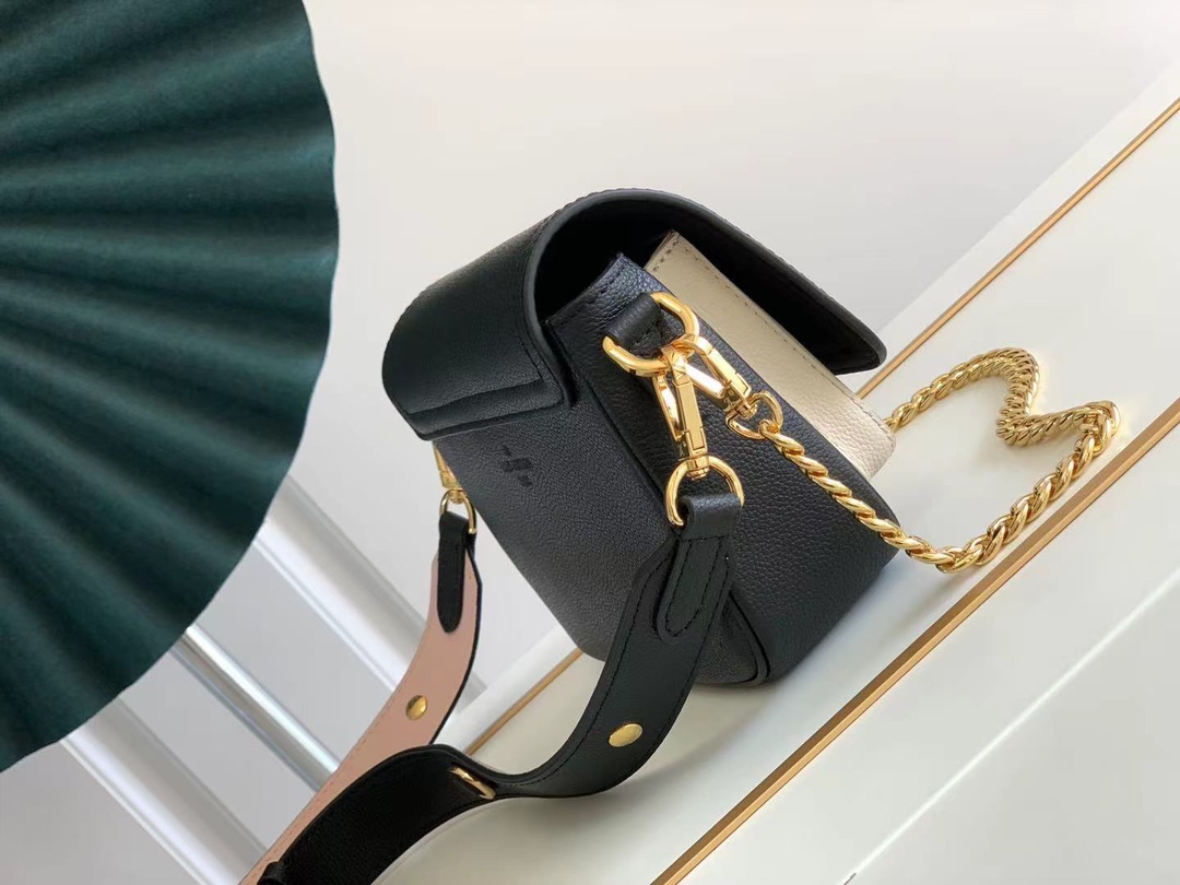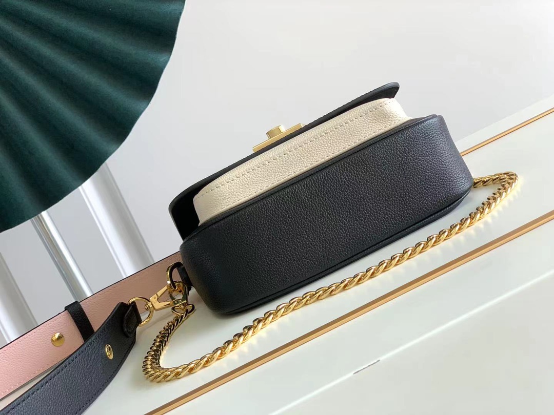 Fashioned from supple grained calf leather, the Lockme Tender cross-body bag comes with a wide removable and adjustable strap in addition to its traditional gold-color chain. Each side of this versatile strap has a different color and texture. A metallic D-ring on the strap means it can be personalized with a charm.