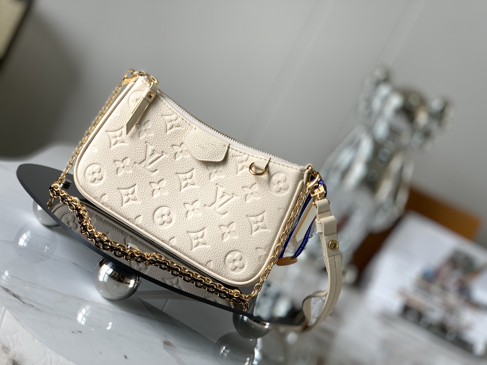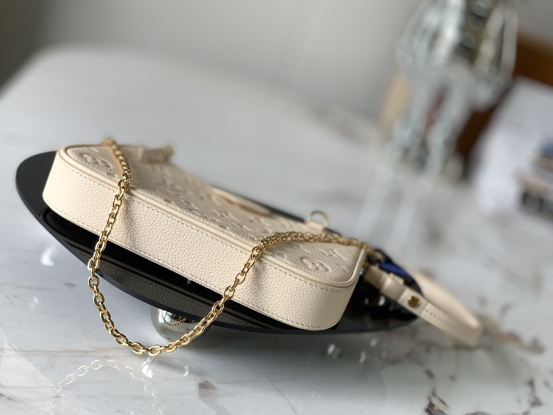 For Spring 2022, the Easy Pouch On Strap is made from Monogram Empreinte leather. The sleek design lends itself beautifully to the embossed Monogram pattern on the supple Empreinte leather. It can be worn on the shoulder, with the chain or the strap for a short carry, or cross-body as the leather strap is adjustable.