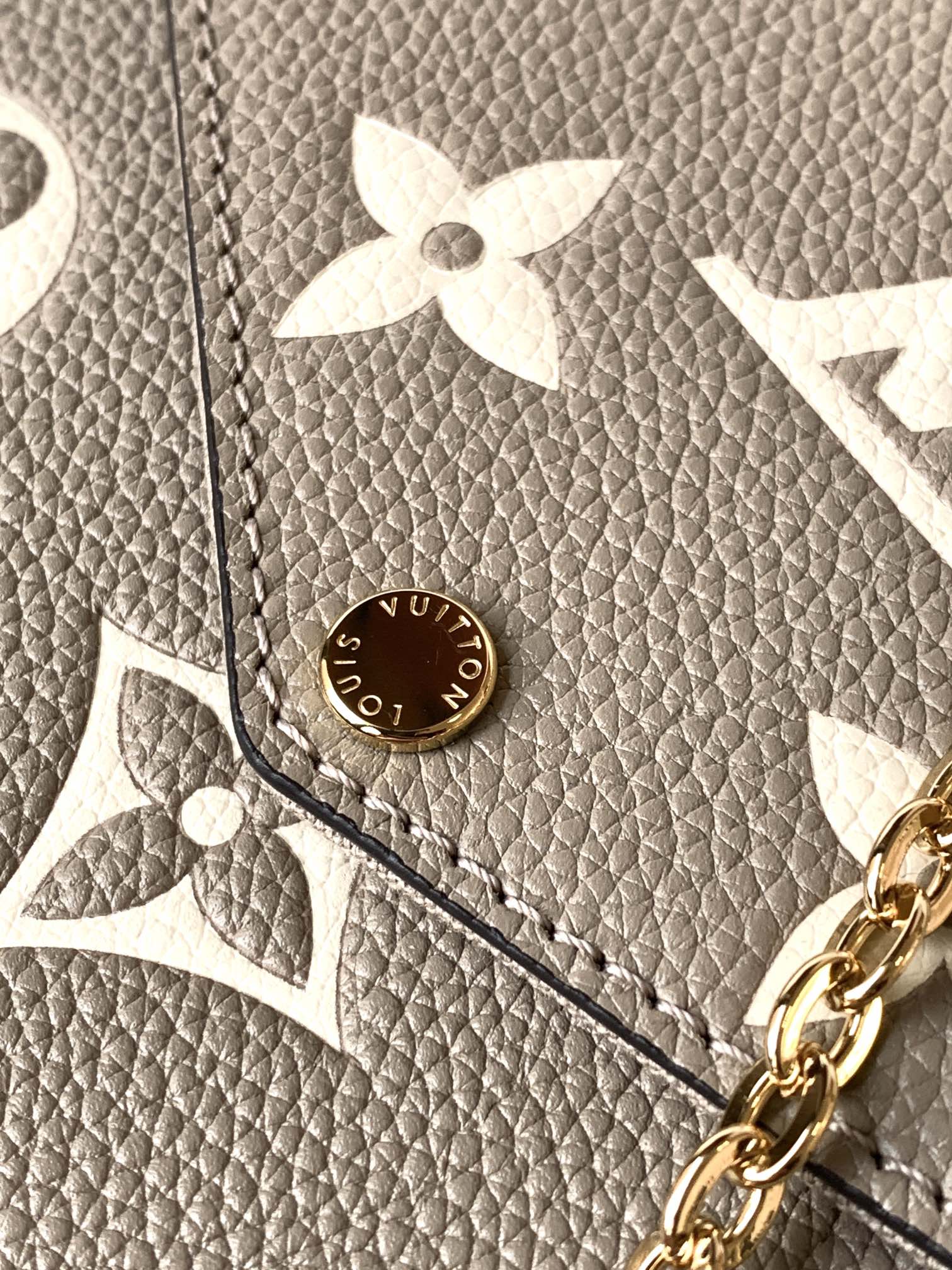 The Félicie Pochette is crafted from supple Monogram Empreinte leather, embossed with Louis Vuitton’s iconic Monogram pattern. The bicolor palette brings added refinement to this elegant and versatile design, which features a removable chain, enabling it to be carried on the shoulder or as a clutch, as well as two removable pockets.