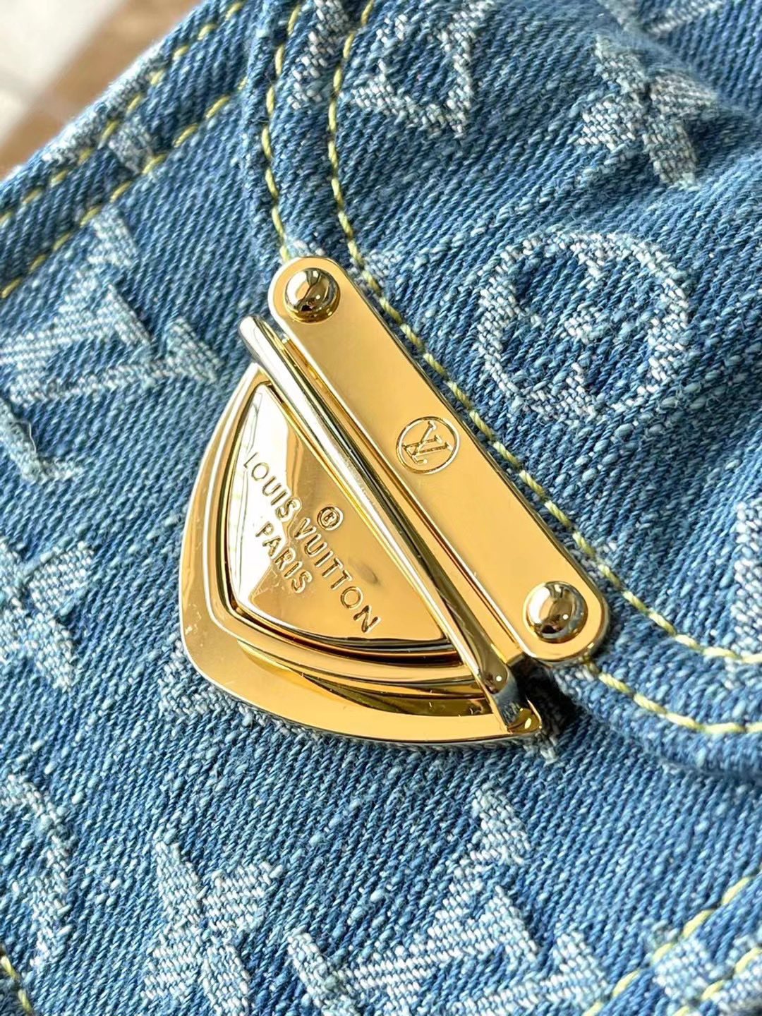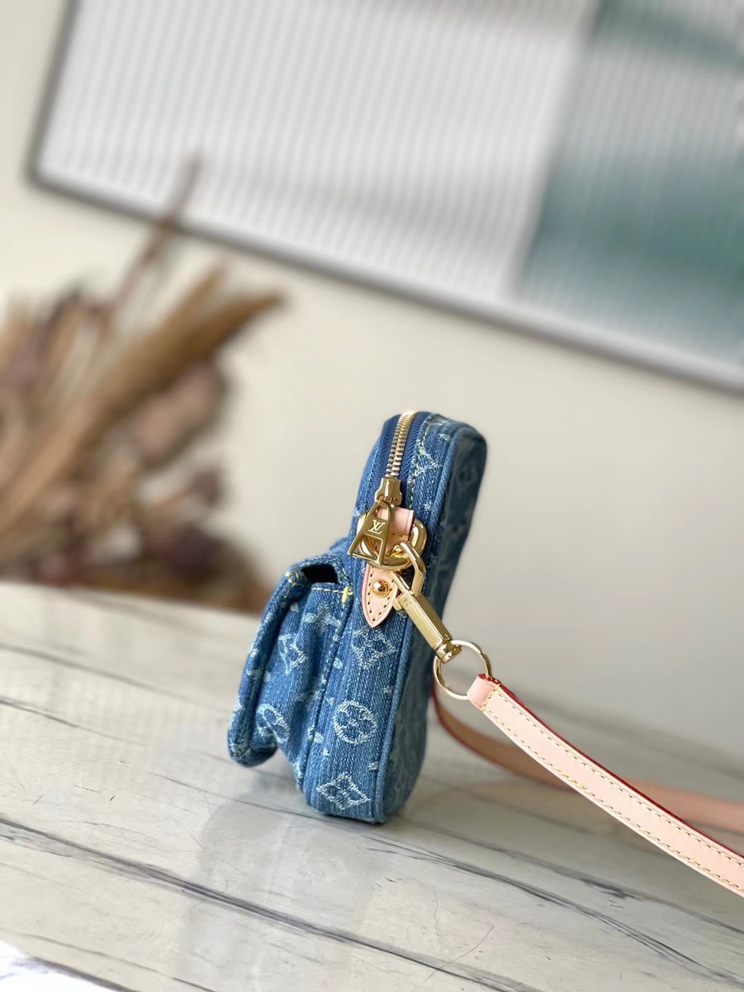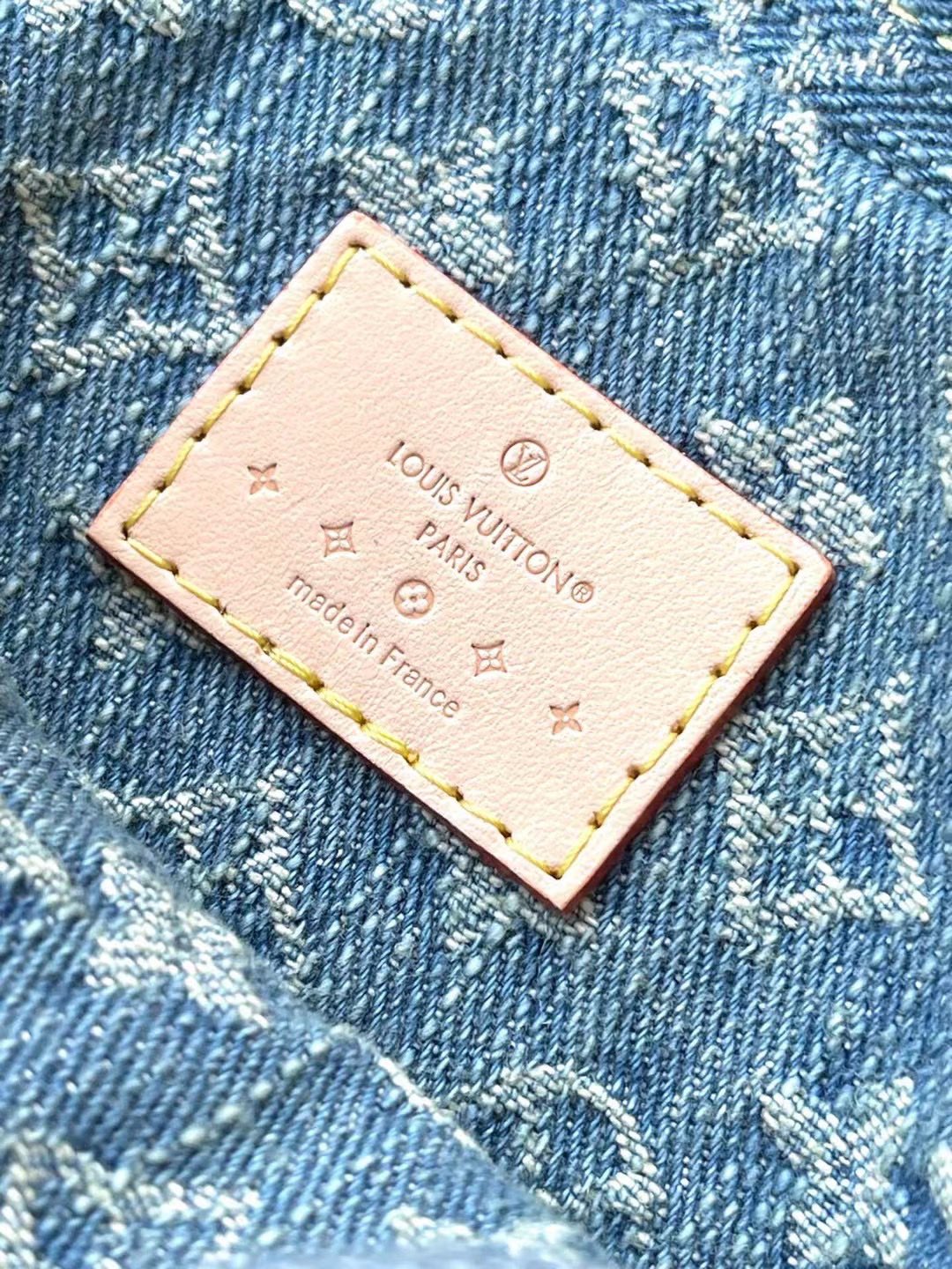 The Fairfax Pochette is made from stone-washed Monogram Denim and features a removable natural-leather shoulder strap. In addition to the main zippered compartment, there’s a small pocket on the front that closes with the House’s eye-catching tuck lock. The Fairfax Pochette has just enough room for an iPhone, a card holder, lipstick, and keys.