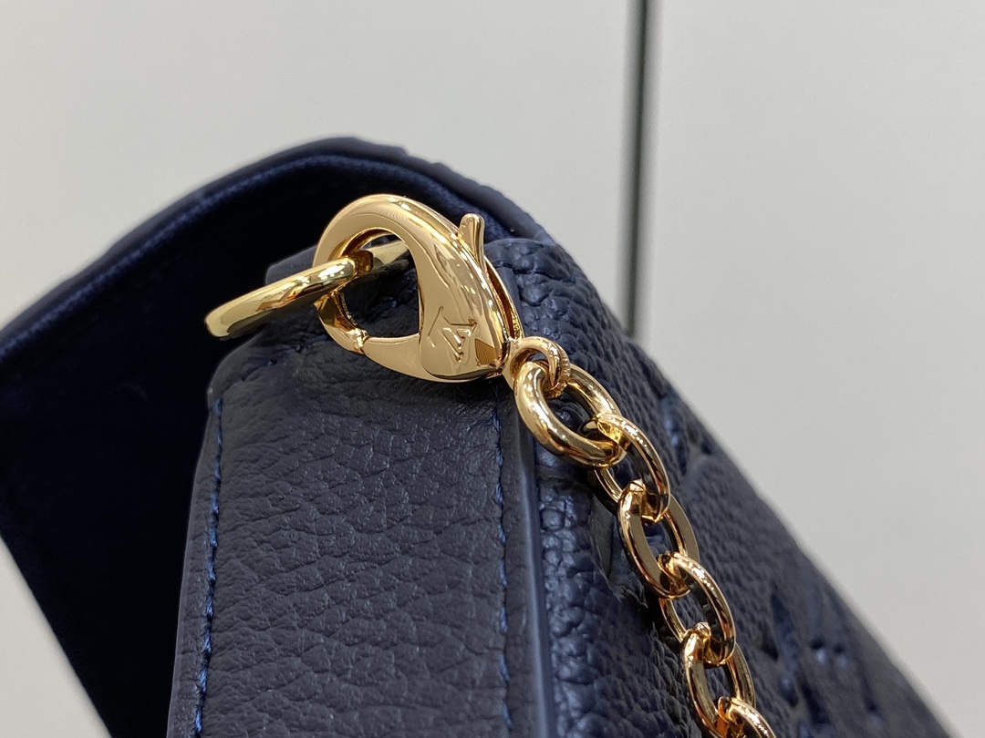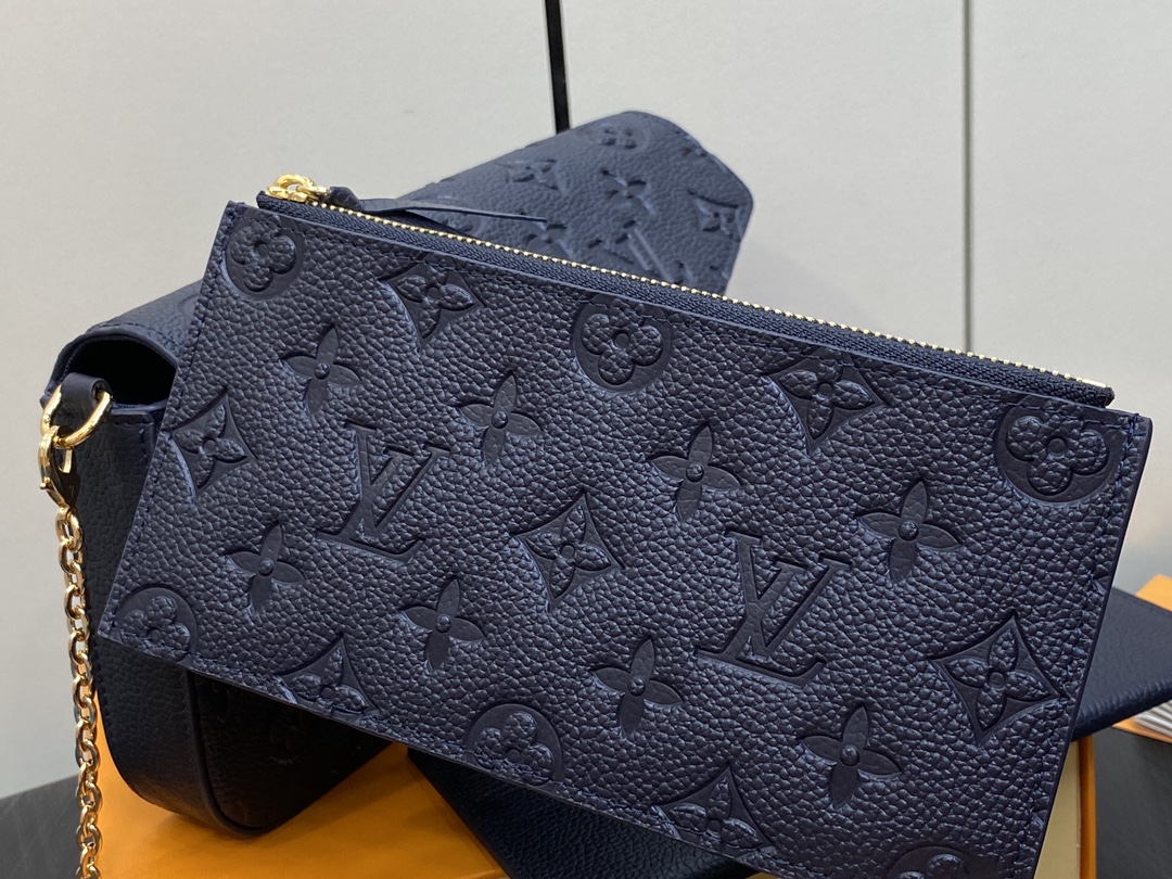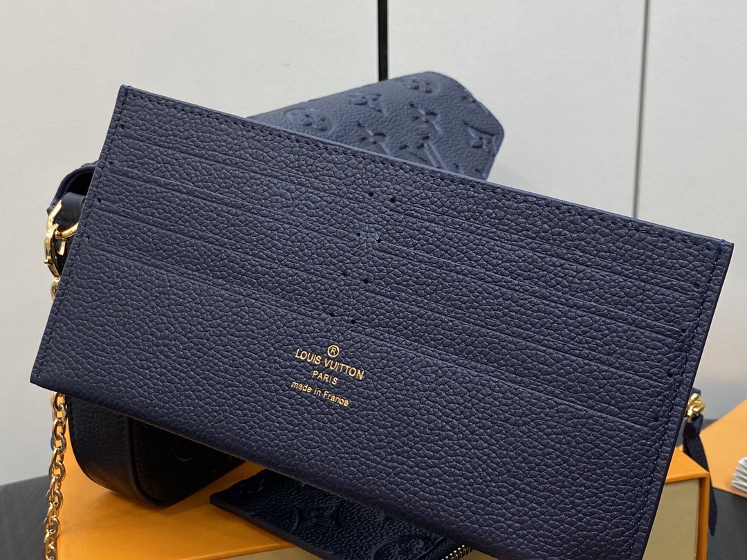 The elegant design of the Félicie Pochette is complemented by supple, grained Monogram Empreinte leather, which is discreetly embossed with the Monogram pattern. This chic, envelope-style pouch is notable for its versatility: it contains two removable pockets, one of which has eight card slots, while its chain is also removable, allowing it to double as a clutch.