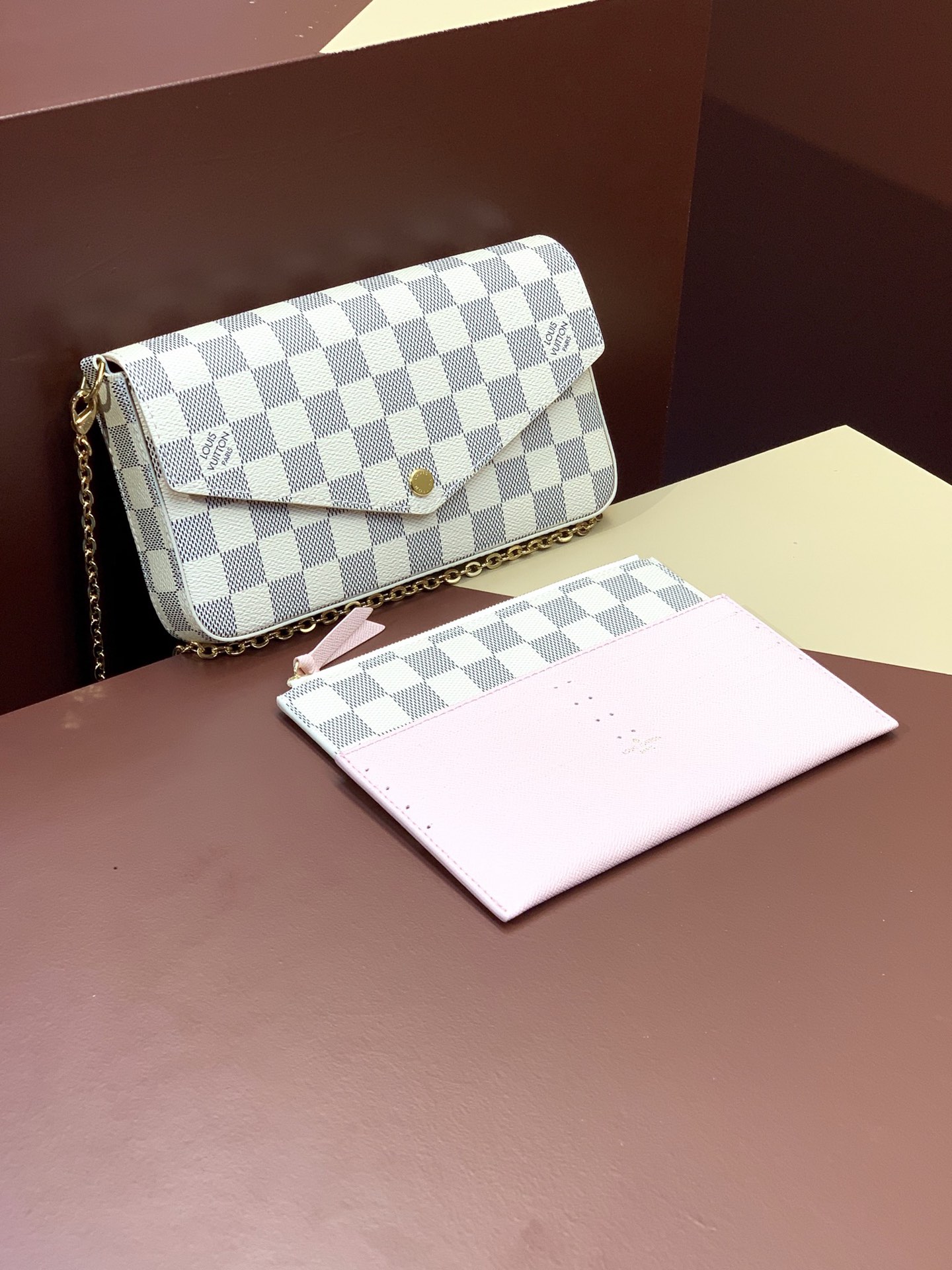 With its spacious inside compartment and two removable pockets, the Pochette Félicie in Louis Vuitton’s historic Damier Ebene canvas is the stylish way to carry and organize daily essentials. Much more than a wallet, this versatile pouch can be transformed into a shoulder bag or clutch thanks to its removable gold-color chain.