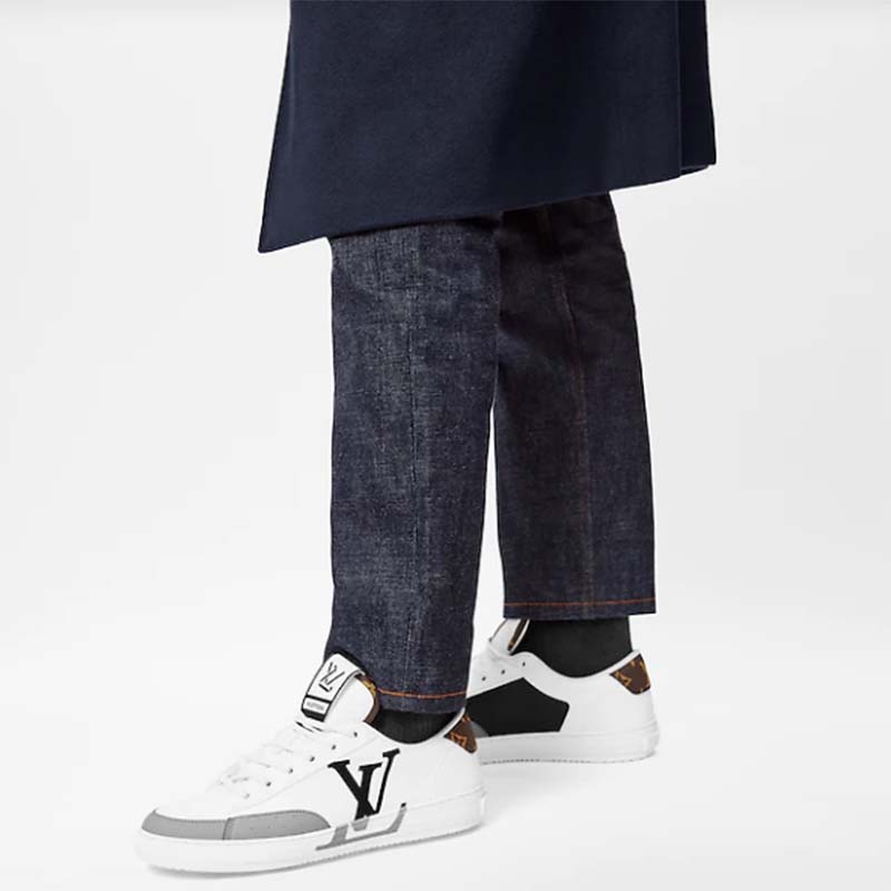 • Louis Vuitton's first eco-designed model. the Charlie sneaker is crafted from 90% sustainable materials: the upper is made from a mix of recycled and bio-based materials. while the outsole is made of bioplastic from renewable sources.
