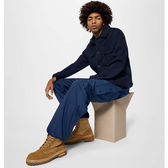 - Its design. which references military combat boots. features thick textile laces and a treaded outsole in ultra-light micro.