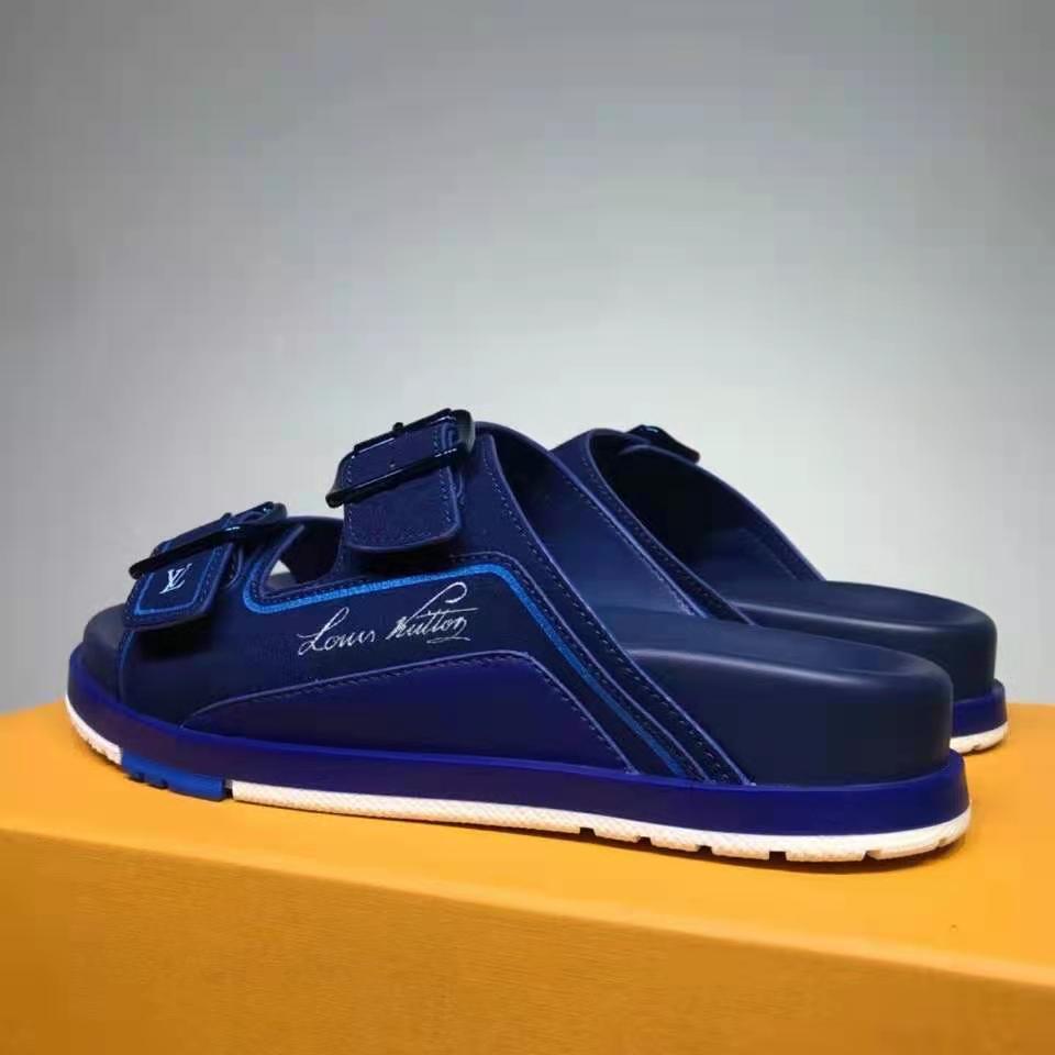 - The LV Trainer mule is a lightweight. comfortable style in blue suede calf leather.