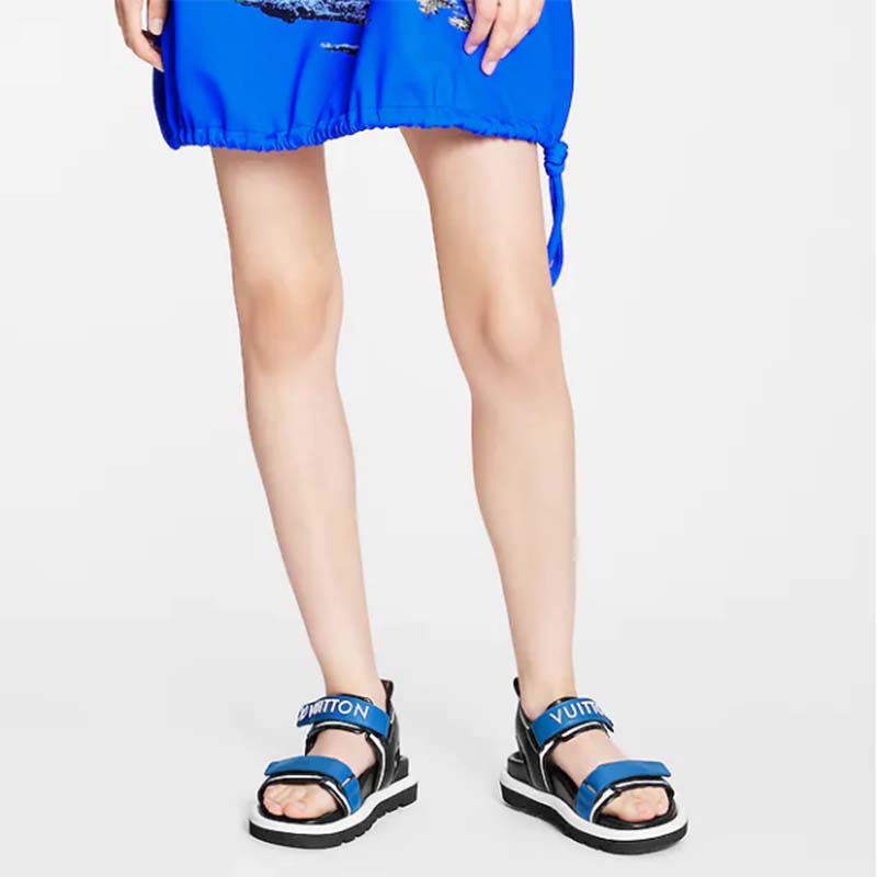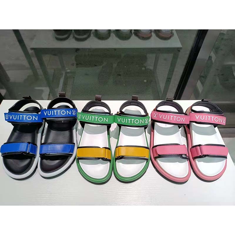 - This sporty version of the Pool Pillow flat comfort sandal references the vibrant colors and graphic effects of Louis Vuitton's Cruise 2022 collection.