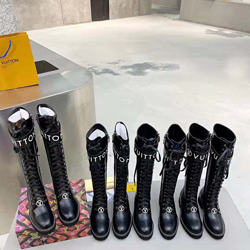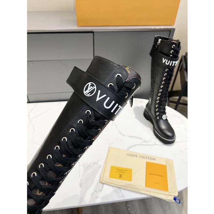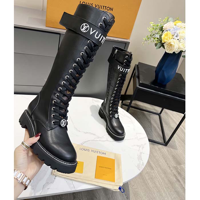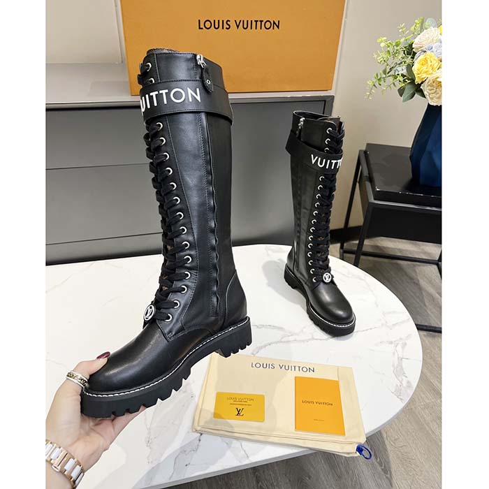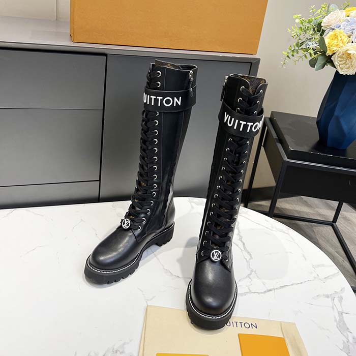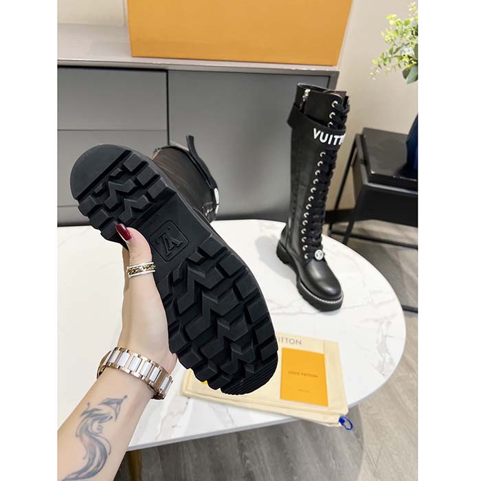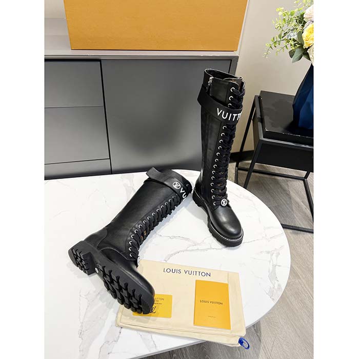 • Louis Vuitton Women Territory Flat Higher Ranger Black Calf Leather LV CircleLV shoes