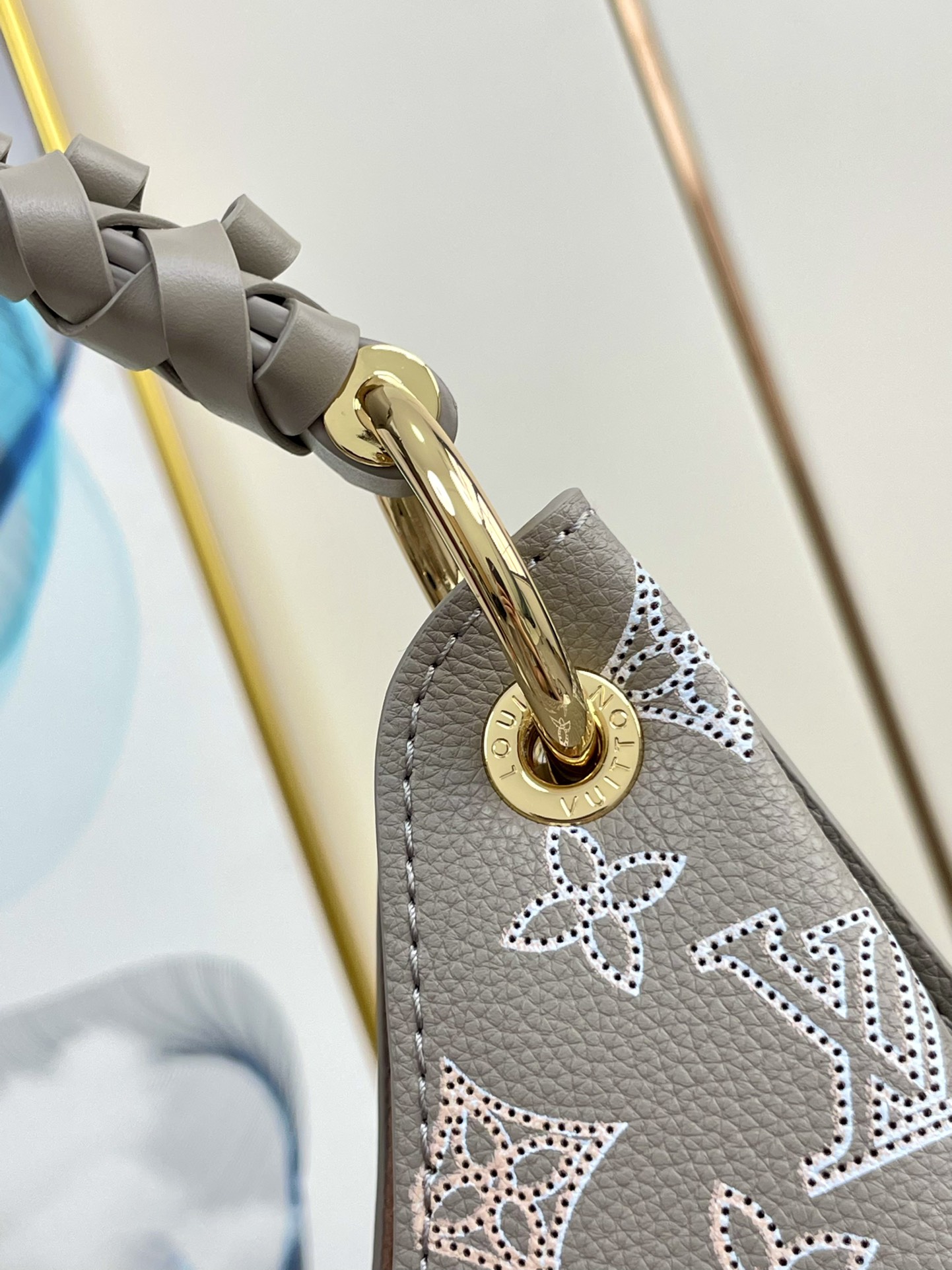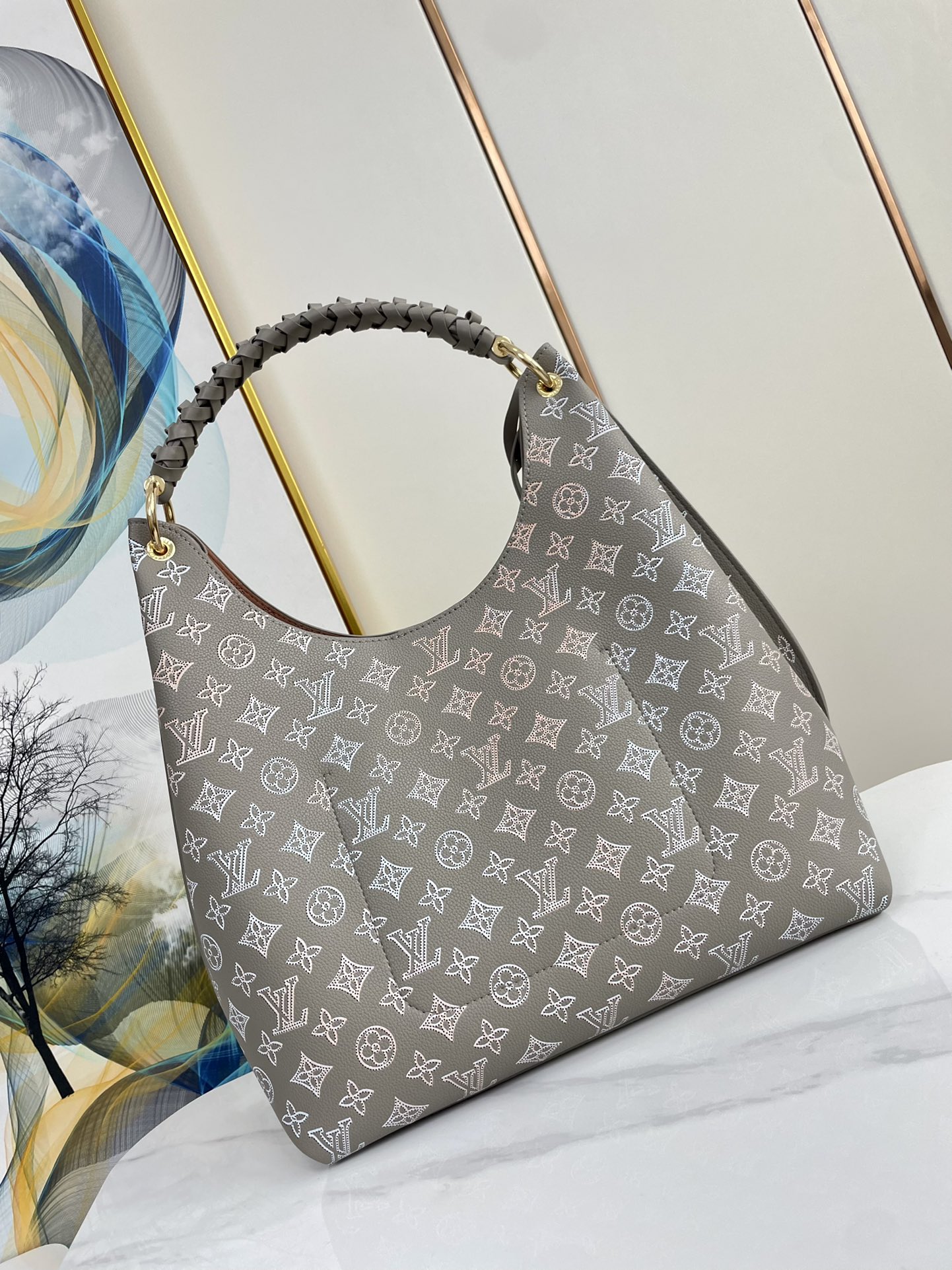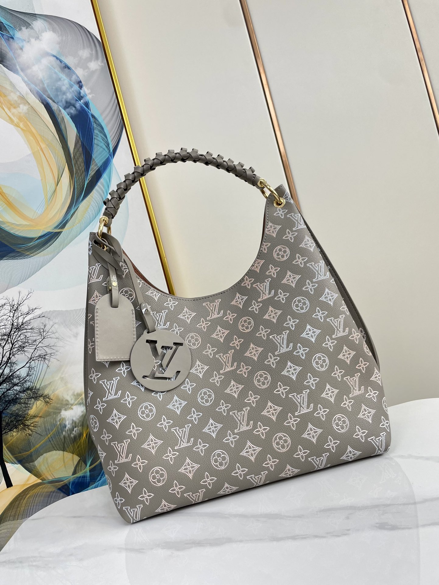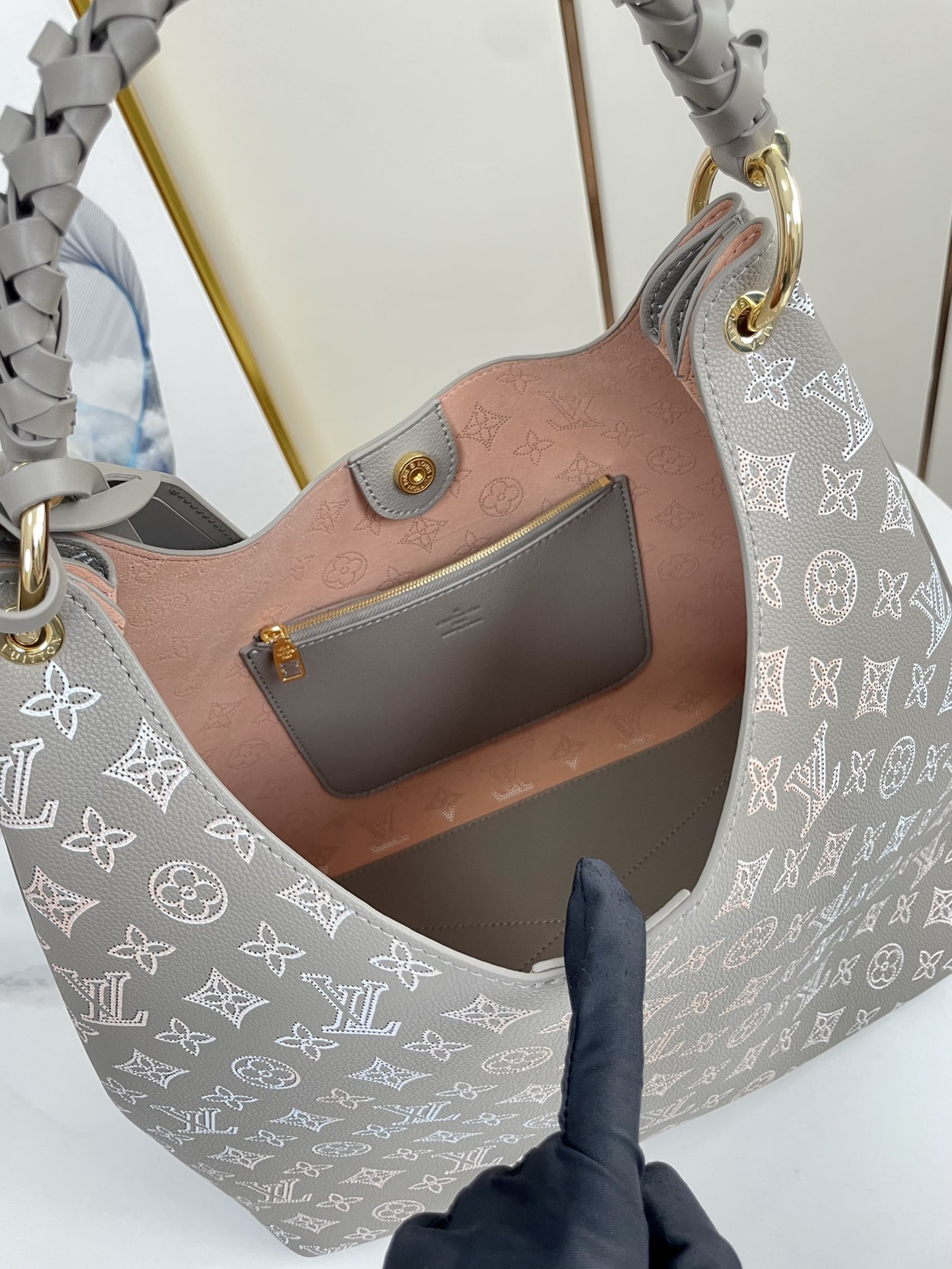 Made from Mahina perforated calf leather, the Carmel hobo bag’s understated colorway is perfectly complemented by the light-gold color of the rings that join the braided-leather top handle to the bag. Lightweight and body-friendly, it has room for essentials and an inside zipped pocket for valuables.