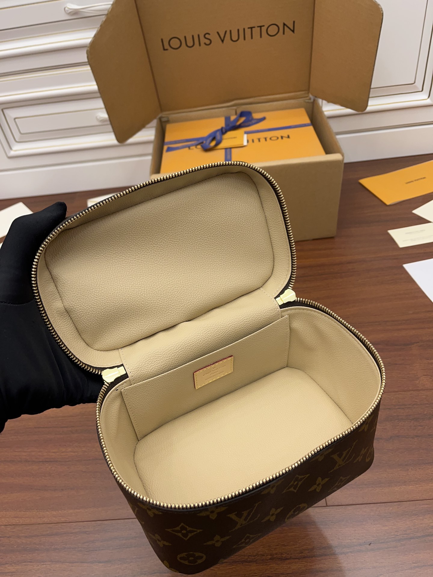 The Nice Mini beauty case in iconic Monogram canvas fits easily into a travel bag or suitcase. Supple, compact, with a leather handle that flattens to save space, it offers good capacity for toiletries and grooming essentials. The top flap opens wide for optimal visibility, thanks to a double-zip closure, ornamented with LV-engraved metal pulls.