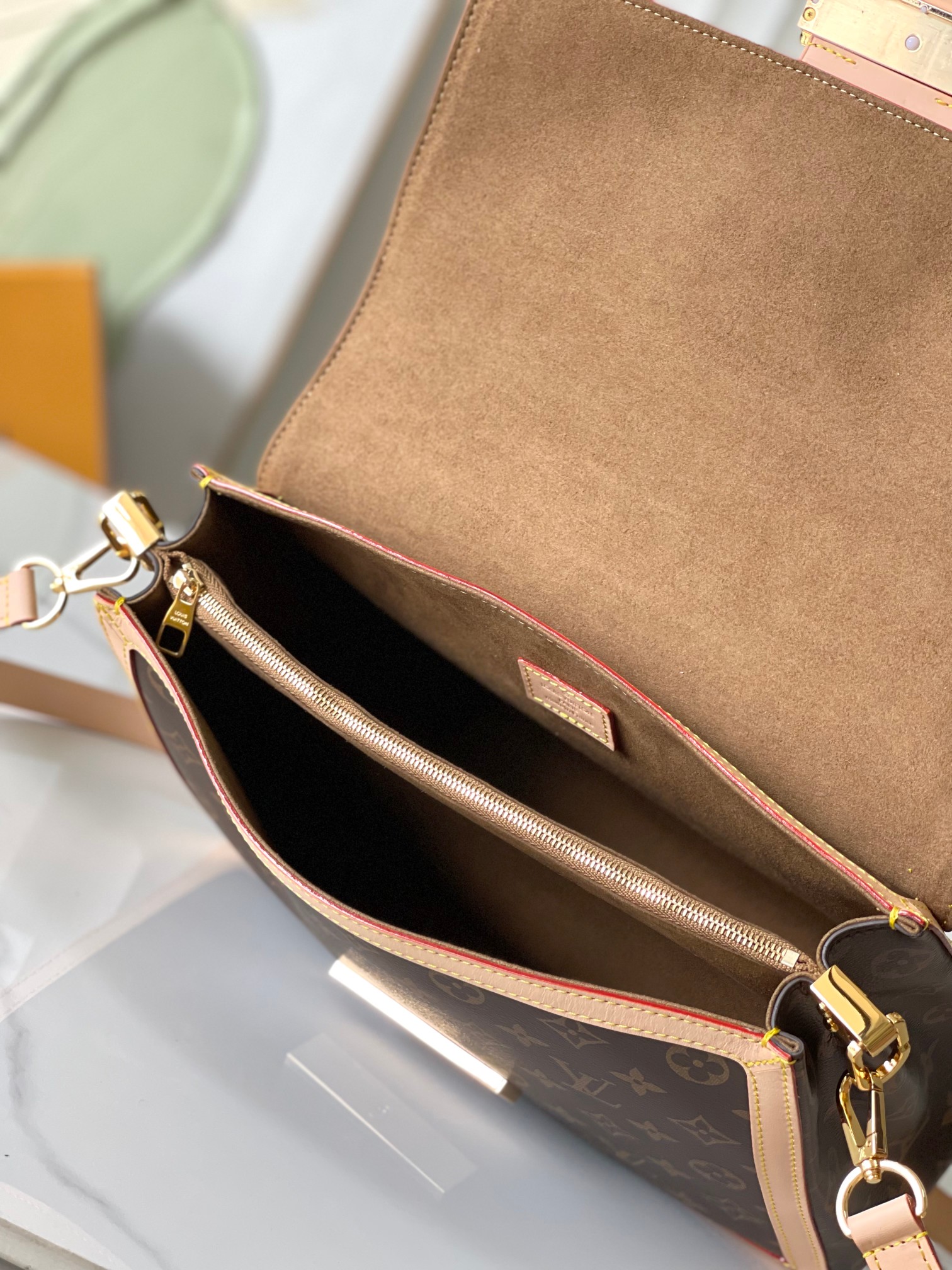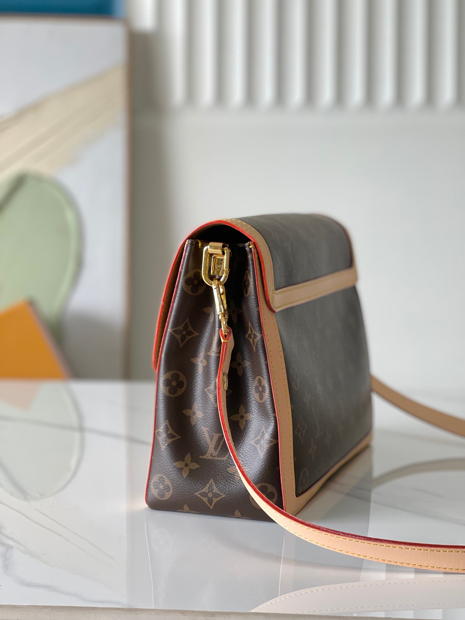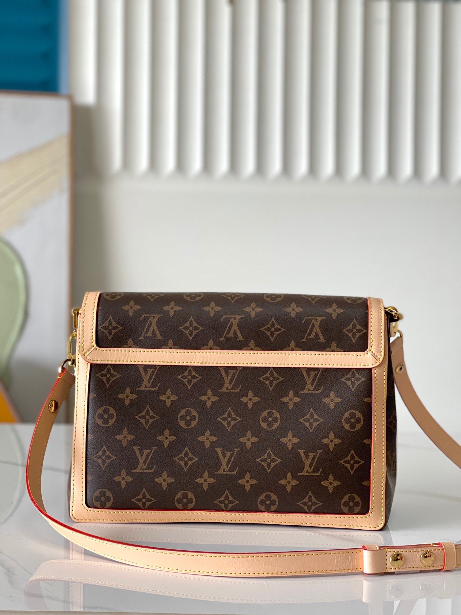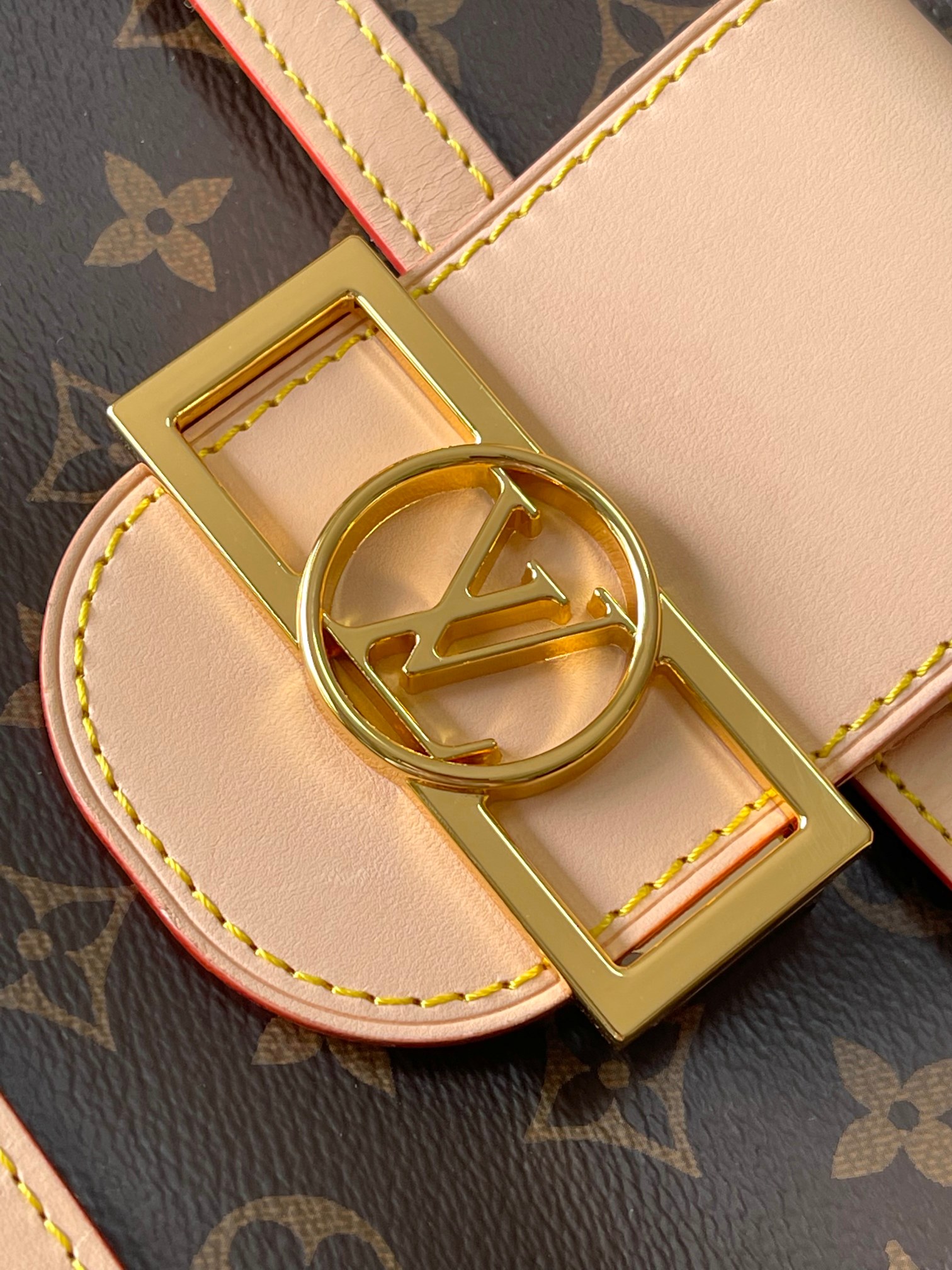 With its supple construction, this new Dauphine Soft GM in Monogram canvas with natural cowhide-leather trim is remarkably comfortable to carry. Unveiled at the Spring-Summer 2024 Show, it features all the signatures of the classic Dauphine bag: the emblematic LV Circle in a rectangle lock, a removable gold-color chain, and a detachable shoulder strap.