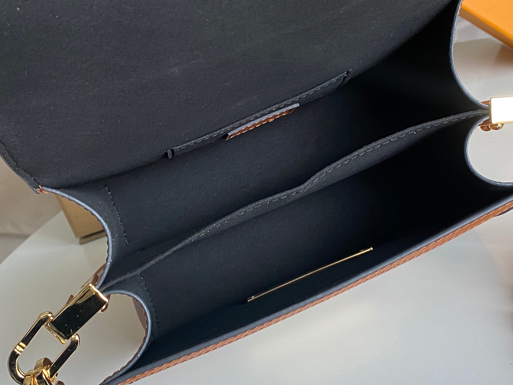 This adorable Micro Dauphine handbag is fashioned from Monogram and Monogram Reverse coated canvas with leather trim for a timeless allure. This new micro shape is embellished with the Dauphine’s adjustable and removable chain and fitted with buckle and LV Circle hardware. This is the perfect companion to accessorize almost any silhouette.