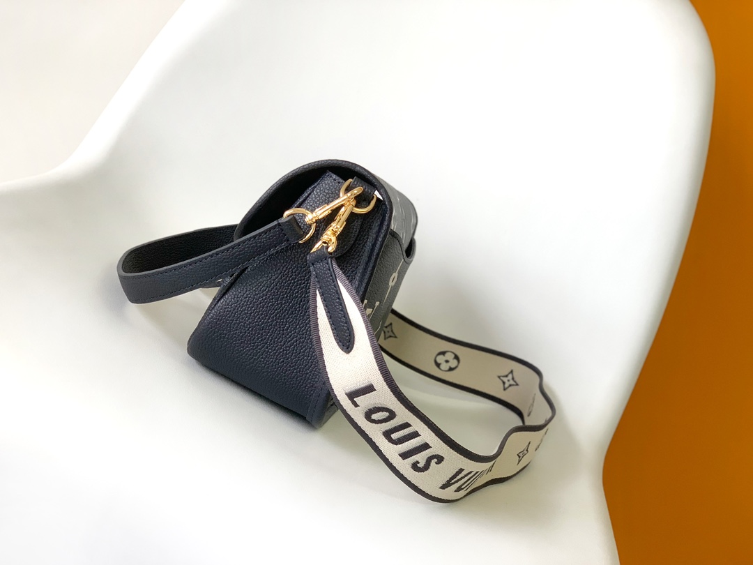 Part of the Nautical Collection, this Diane PM satchel bag is made from two-tone Monogram Empreinte leather and features a distinctive gold-color buckle. It has both a removable jacquard cross-body strap with “Louis Vuitton” woven into it, and a second shorter detachable strap for hand and short-shoulder carry.
