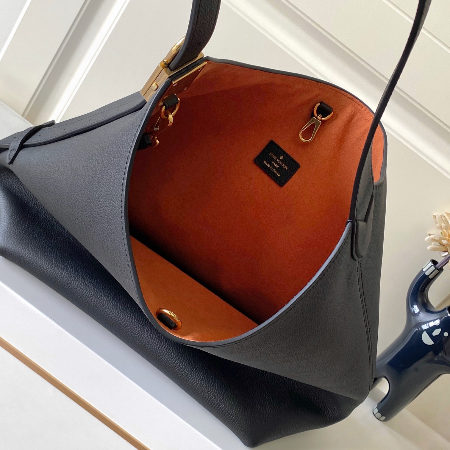 - Gold-color hardware