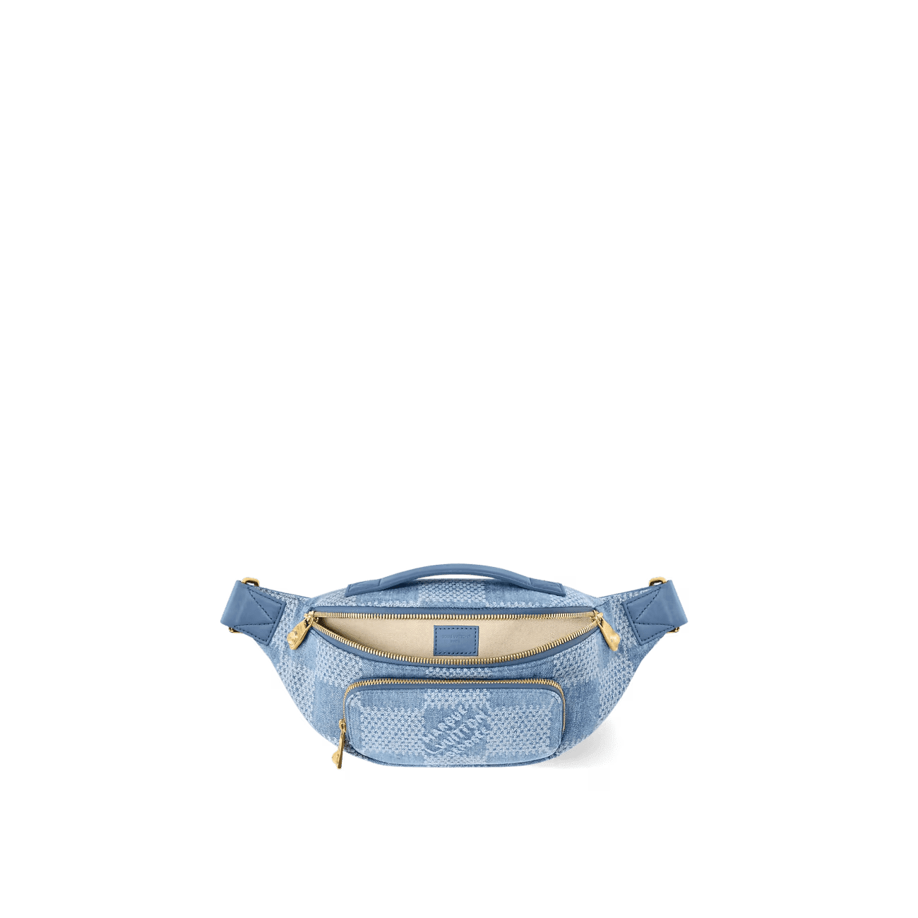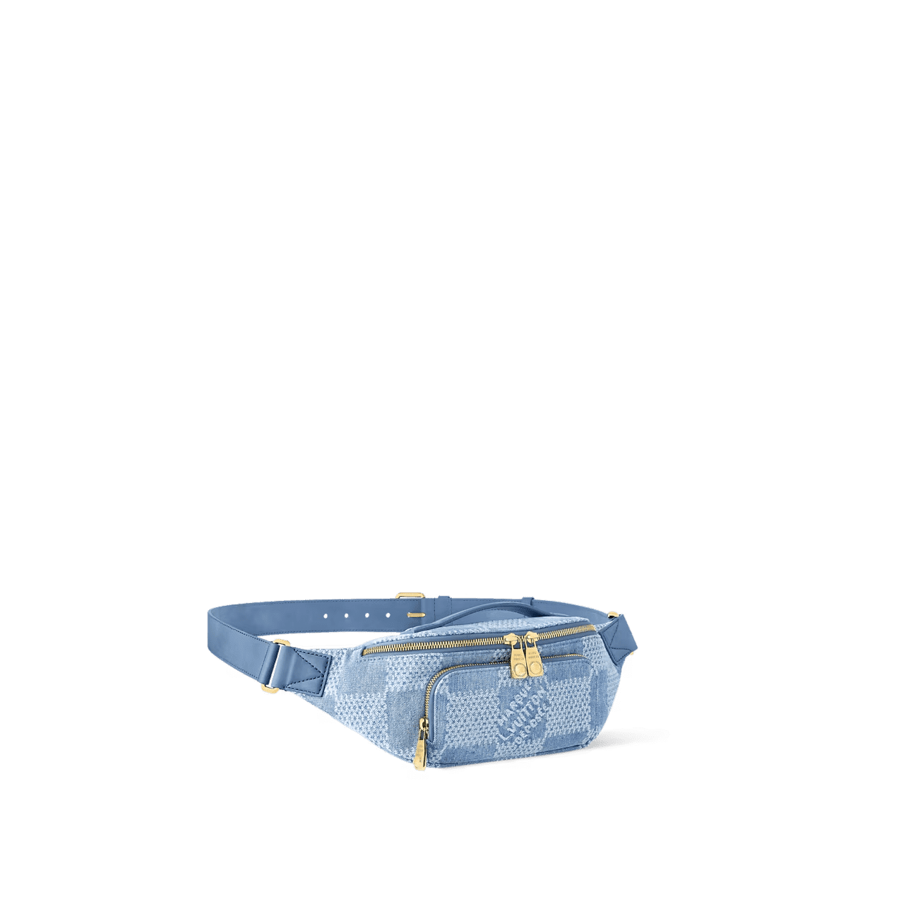 Crafted from Damier Denim 3D cotton canvas with gold-toned hardware, the Rush Bumbag is perfect for daily essentials. The oversized checkerboard pattern, inspired by the House’s Damier motif, is elevated by details like the pearl inserts Pharrell Williams adds to the zip-pulls. Its adjustable strap allows for comfortable carry around the waist, on the shoulder, or cross-body.