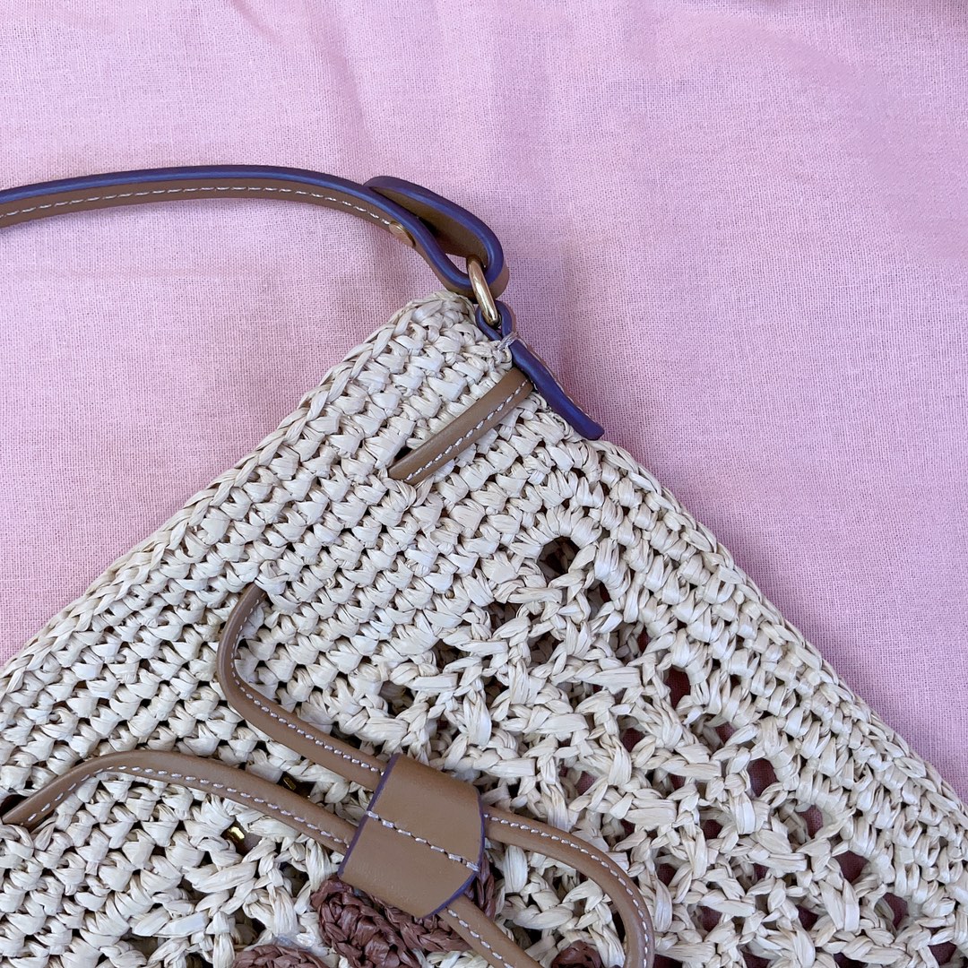 5ND016 new lucky bag woven bag, customized Japanese imported Lafite grass, non-market ordinary PP grass, no difference between the material and the authentic product, the bag is small and exquisite overall, and it is more practical with leather shoulder straps. You can hold it in your hands and back underarms when you go out in summer. Size: 20 X 23 cm