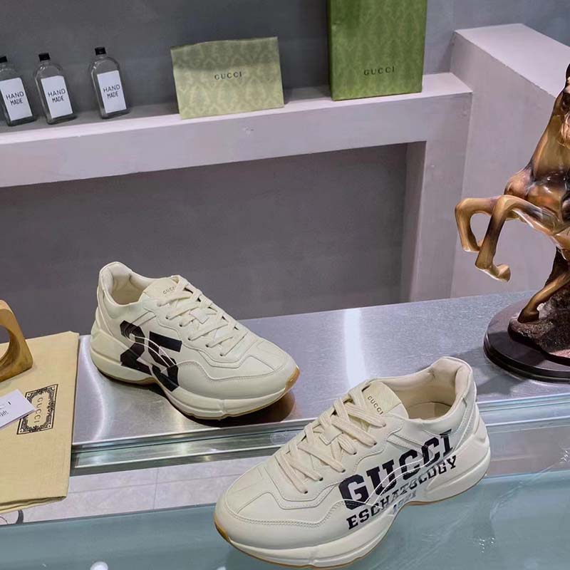 • Gucci Unisex GG Rhyton Sneaker ’25’ Ivory Demetra Rubber Sole 5 Cm HeelGucci shoe