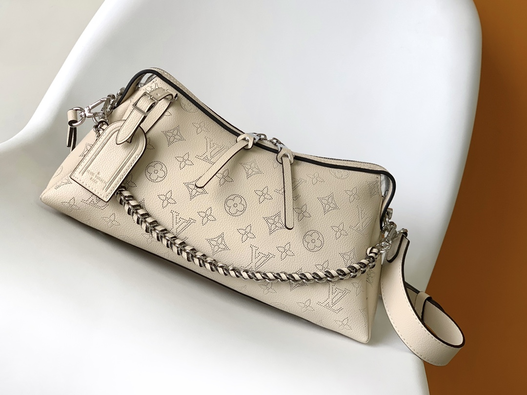The Mahina Hand It All PM bag is made with the Maison’s exclusive perforated calfskin. The supple signature leather displays a beautiful drape, enhanced by the bag’s curvy silhouette. Fitted with a leather strap and a braided chain-and-leather handle – both detachable – this is a stylish and versatile companion for women on the go.