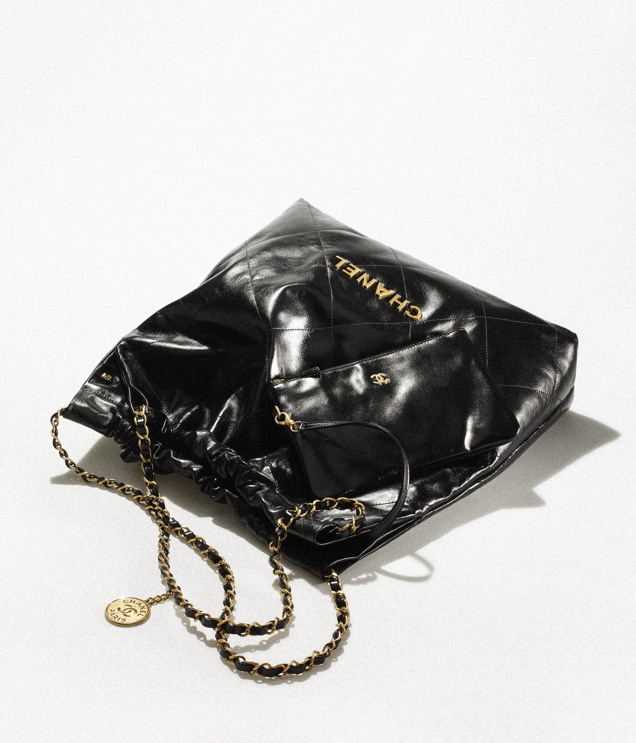 Shiny Calfskin & Gold-Tone Metal Black18.7 × 17.6 × 3.9 in