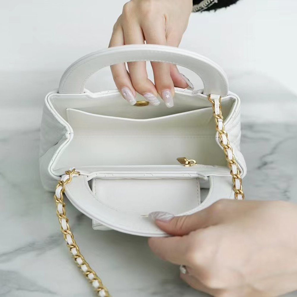 Includes tag, ribbon, camellia flower, care booklet, dust bag, and box