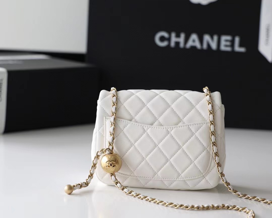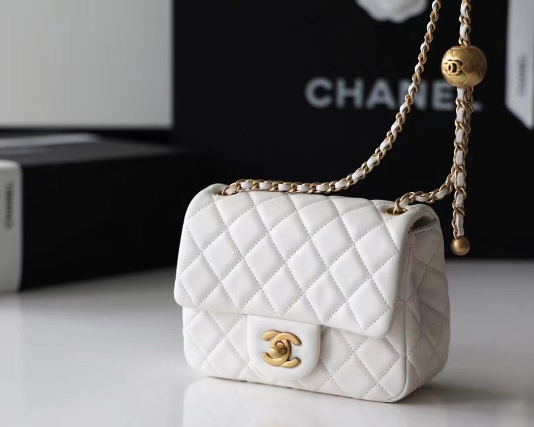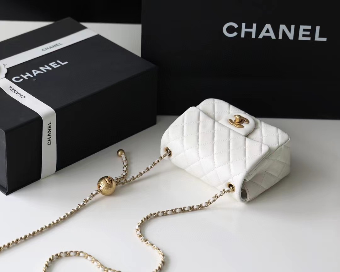 CHANELLambskin Quilted Mini Pearl Crush Flap WhiteCF
